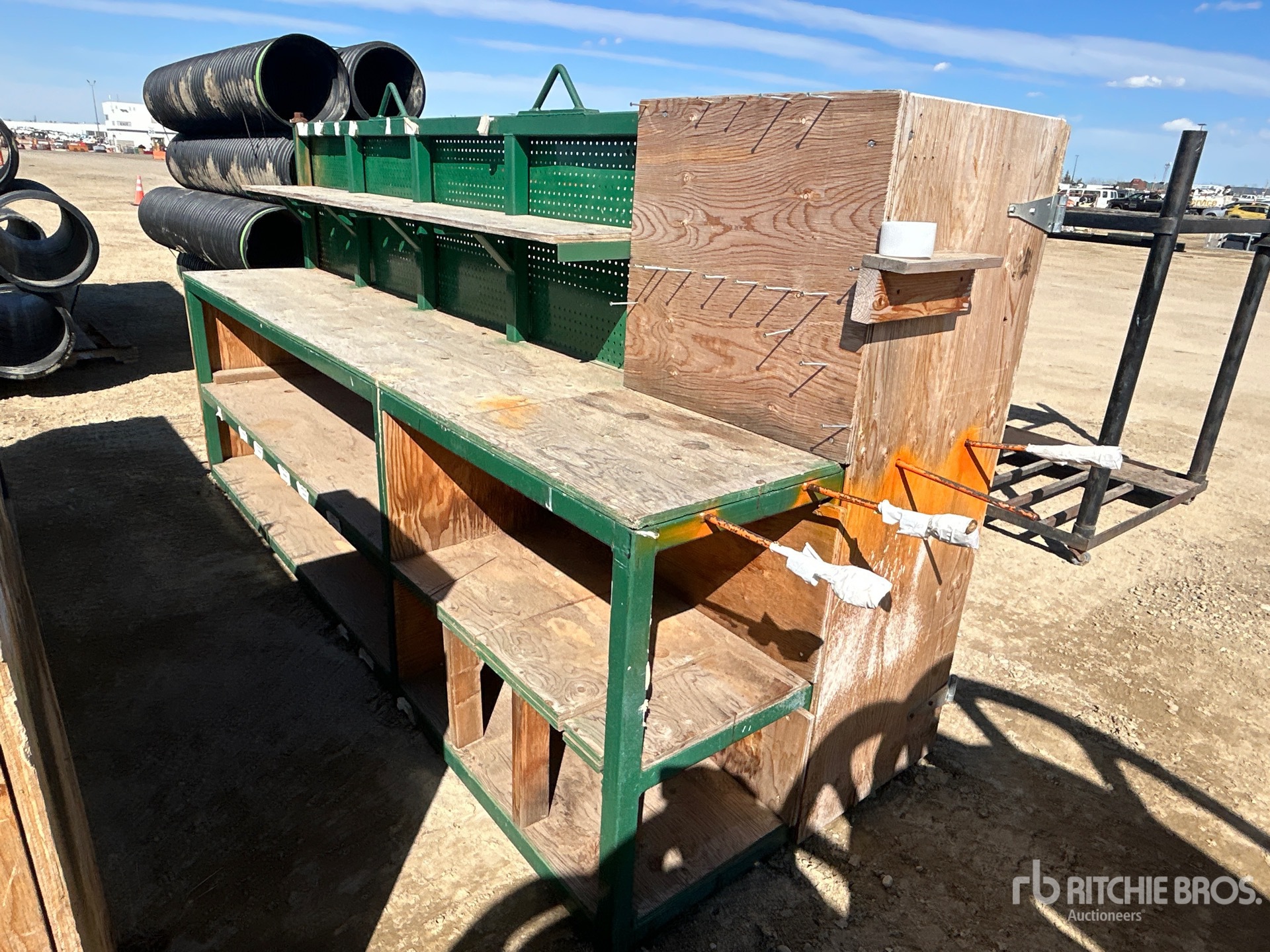 Shelving, Table, Pegboard, Cabinet