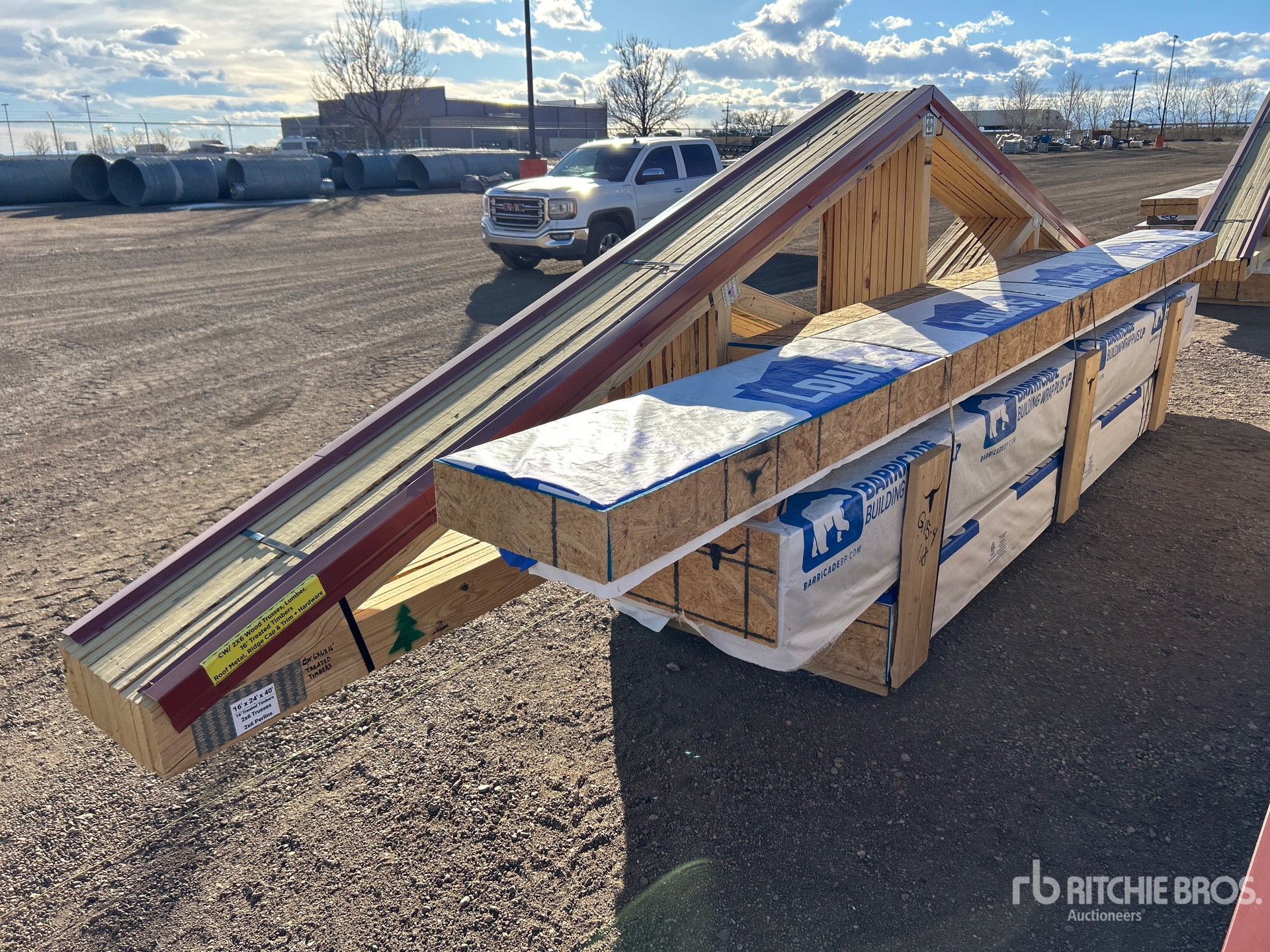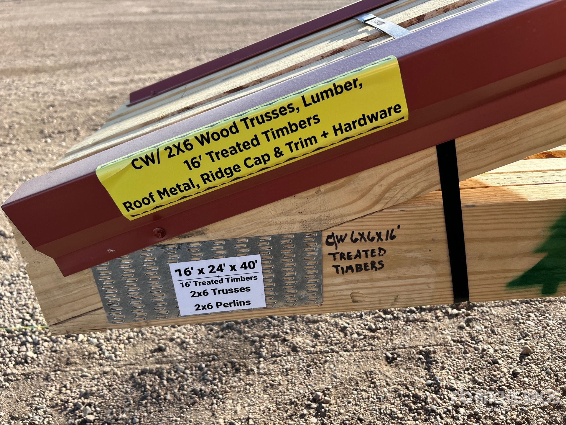 2x6 Wood Trusses, 6 in x 6 in x 16 ft Treated Timbers, Ridge Cap & Trim, & Hardware Needed For Assembly
