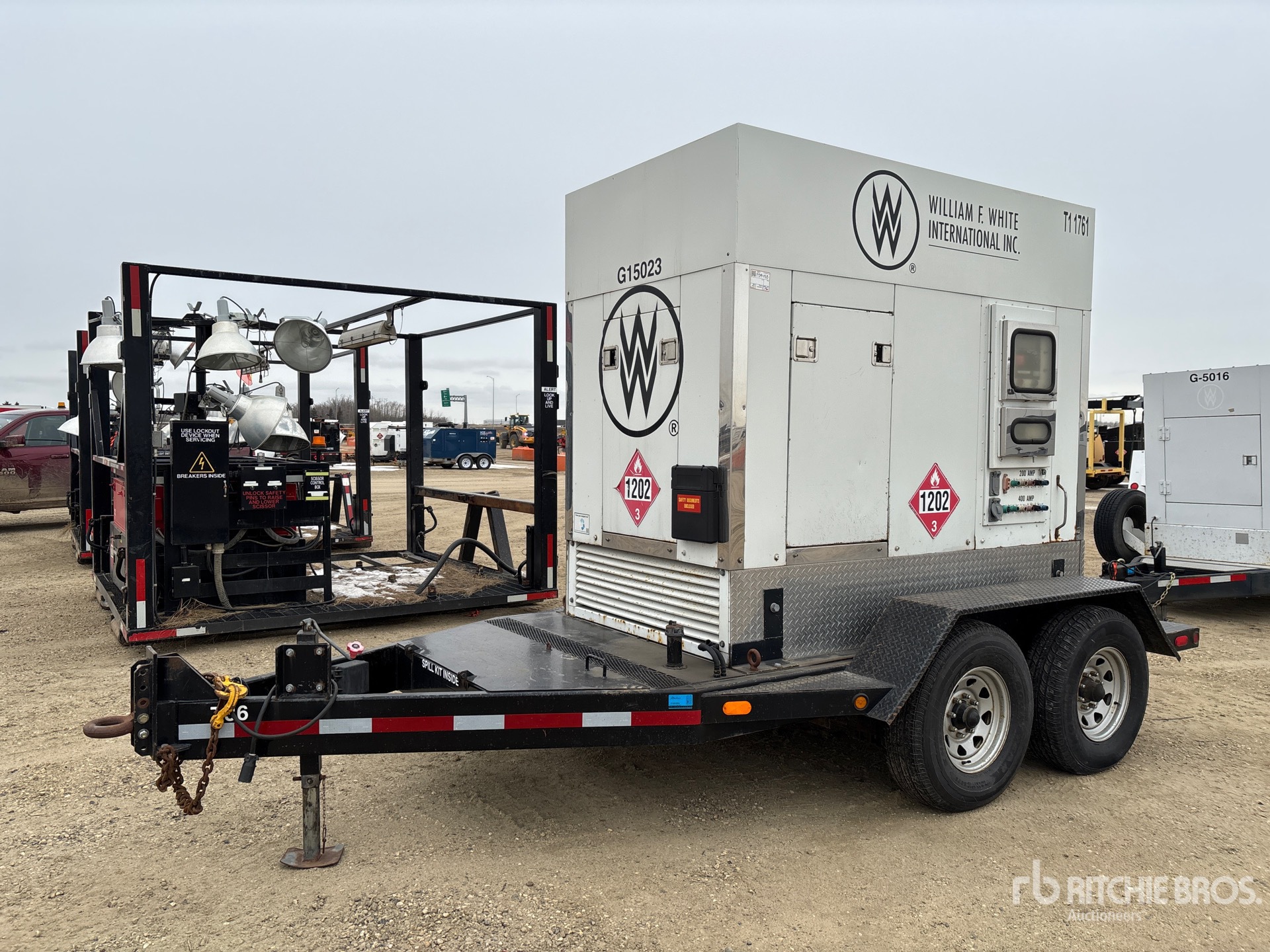 1998 US EPA Label, CARB Compliant, Cummins 6CTA8.3-G2 6 Cylinder 277 hp 8.3 cc Diesel Engine, /170 kW Rated 3 Phase Output, 120 V / 208 V Rated Voltage, Sound Attenuated, Bottom Mounted Fuel Tank, Lunette Ring Carrier Trailer, Electric Brakes