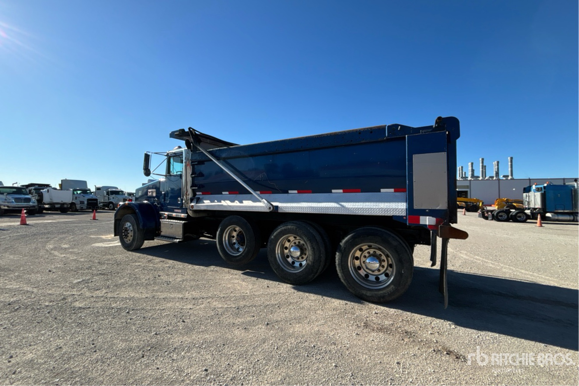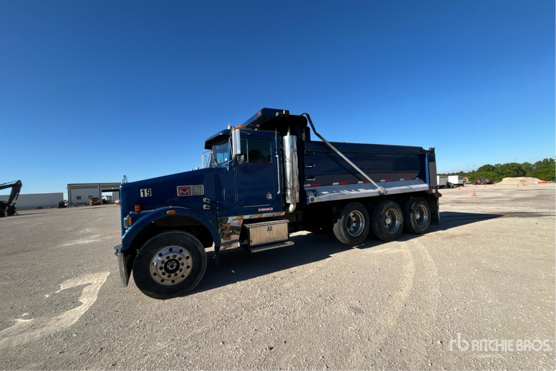 Diesel Engine, Manual Transmission, 12000 lb Front Axle, 38000 lb Rears, 50000 lb GVWR, 11R22.5 Front Tires, 11R24.5 Rear Tires, Air Lift Pusher Axle, Spring Suspension, 232 in Wheelbase, PTO, 16 ft 8 in Long x 4 ft 3 in High Body, Round Bottom, Electric Roll Tarp