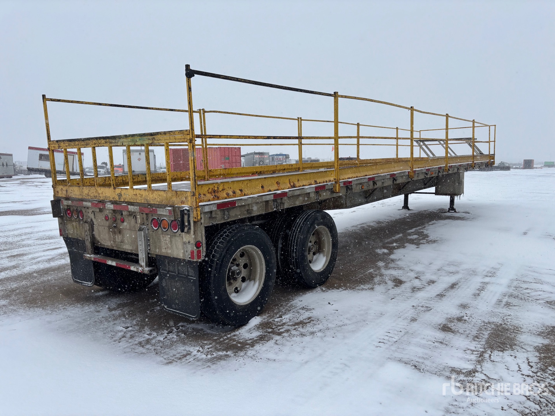 Aluminum/Steel Combination Frame, Air Ride Suspension, Air Brakes, 102 in Overall Width, Aluminum w/Wood Strips Flooring, Aluminum Wheels, 11R24.5 Tires, 40568 kg GVWR, Removable hand rails, set of steps.