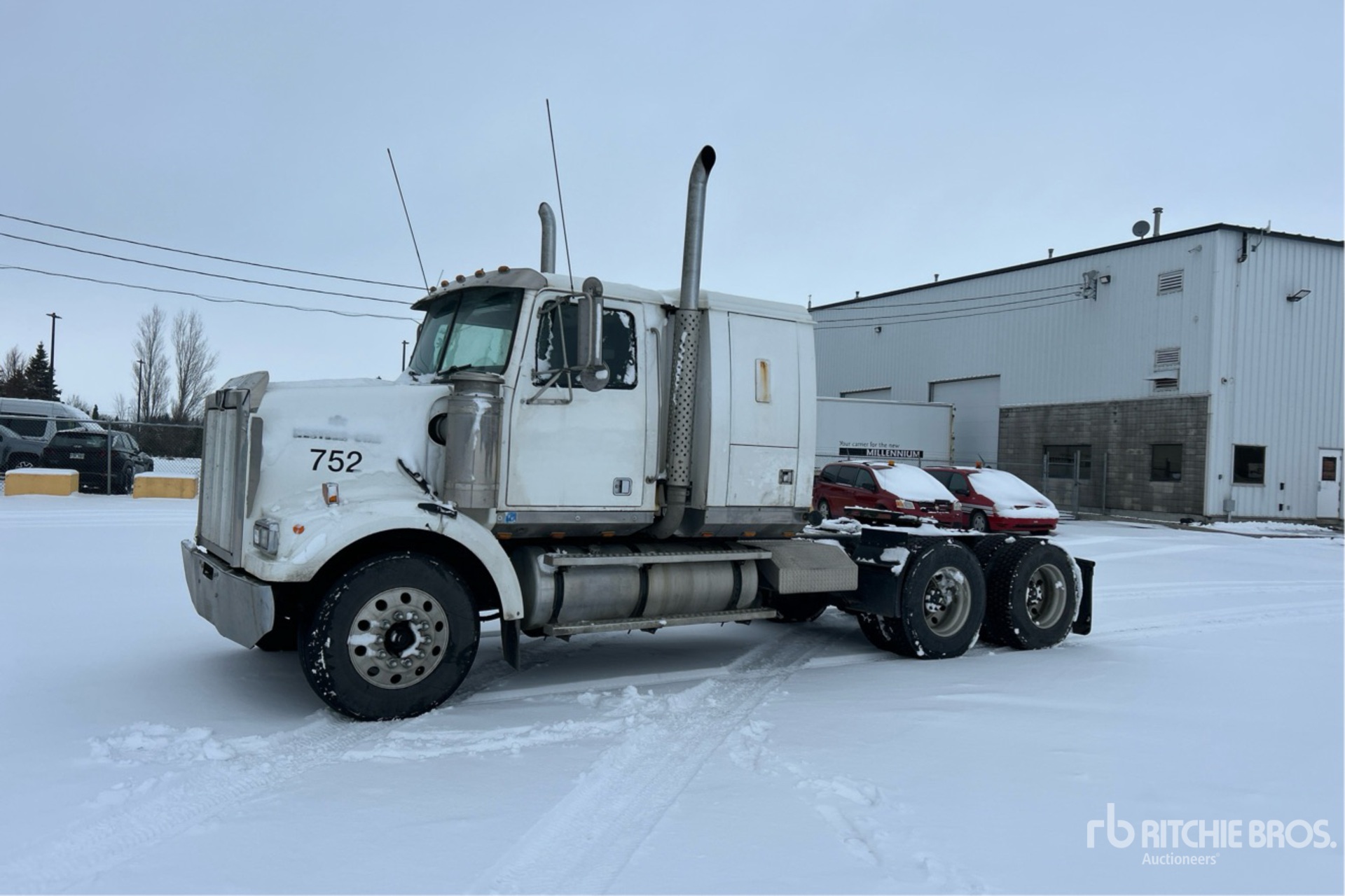 Detroit Series 60 500 hp Engine, 2000 US EPA Label, 26099 Engine hrs, Eaton Fuller 10-Speed Manual Transmission, 12000 lb Front Axle, 40000 lb Rears, 52000 lb GVWR, Engine Brake, 40 in Flat Top Sleeper Cab, 210 in Wheelbase, Air Suspension, Aluminum Wheels, 11R22.5, Air Sliding 5th Wheel, Dual Fuel Tanks