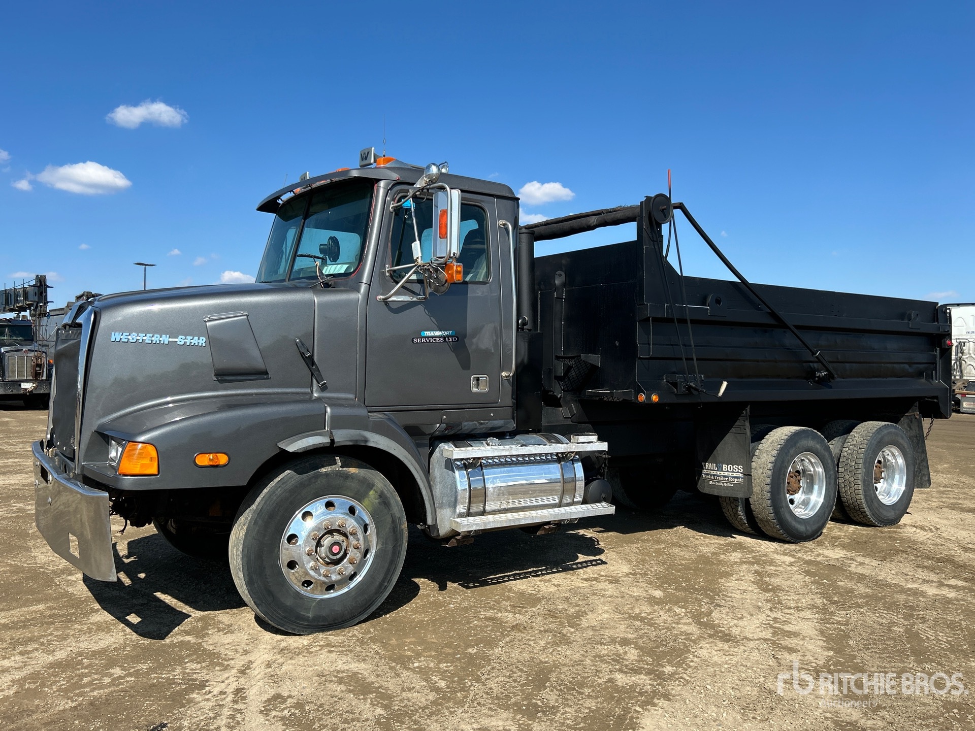 Located in Lane 46 Spot 35, Cat C10 6 Cylinder 10.3 L Diesel 335 hp Engine, 2001 US EPA Label, CARB Compliant, 14842 Engine hrs, Engine Brake, Eaton Fuller RTLO-12913A 13-Speed Manual Transmission, Double Differential Locks, 16000 lb Front Axle, 40000 kg Rears, 56000 lb GVWR, Air Ride Cab, Aluminum Wheels, 11R22.5, Rubber over Walking Beam Suspension, 208 in Wheelbase, PTO, 15 ft Long x 3 ft High Steel Body, Manual Roll Tarp