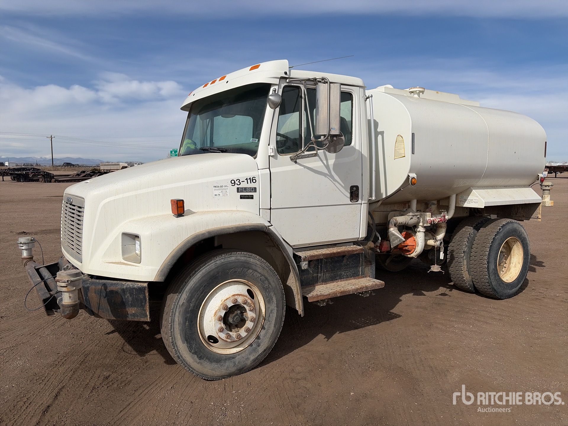 Located in Lane 8 Spot 35, Mercedes-Benz MBE-900 6 Cylinder 6.4 L Diesel 280 hp Engine, 2002 US EPA Label, 1355 Engine hrs, Allison Automatic Transmission, 12000 lb Front Axle, 21000 lb Rears, Meritor Drive Axles, 6.43:1 Axle Ratio, 33000 lb GVWR, Air Ride Cab, 11R22.5, Spring Suspension, 156 in Wheelbase, PTO, Steel Tank, PTO Driven Pump, Front Spray, Rear Spray, Side Spray