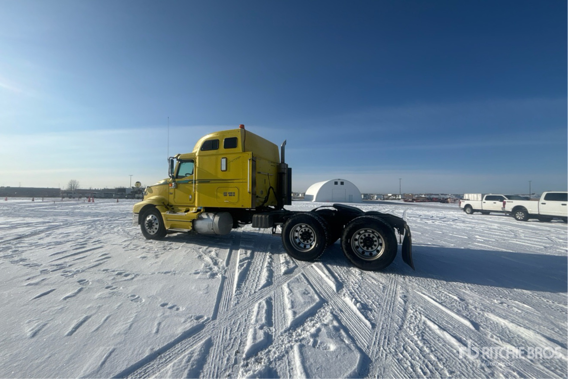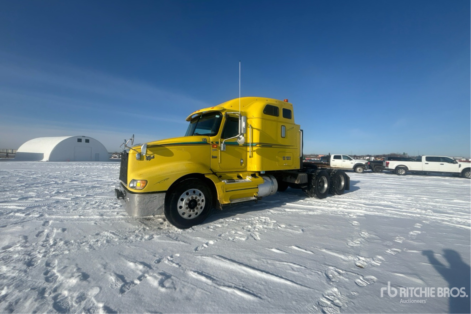 Located in Lane 35 Spot 22, Cummins ISX 500 hp Engine, 2005 US EPA Label, Eaton Fuller 13-Speed Manual Transmission, 12000 lb Front Axle, 40000 lb Rears, Engine Brake, Differential Lock, 56 in Mid Roof Sleeper Cab, 234 in Wheelbase, Air Suspension, Aluminum Wheels, 11R24.5, Air Sliding 5th Wheel, Dual Fuel Tanks