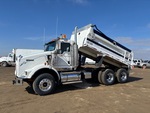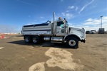 Cat C15 6 Cylinder Diesel Engine, 17229 Engine hrs, Engine Brake, Eaton Fuller RTLO-18918B 18-Speed Manual Transmission, Differential Lock, 14144 lb Front Axle, 46000 lb Rears, 60144 lb GVWR, Aluminum Wheels, 385/65R22.5 Front Tires, 11R24.5 Rear Tires, Neway Air Ride Suspension, 200 in Wheelbase, PTO, 15 ft Long x 4 ft High Steel Body, Electric Roll Tarp