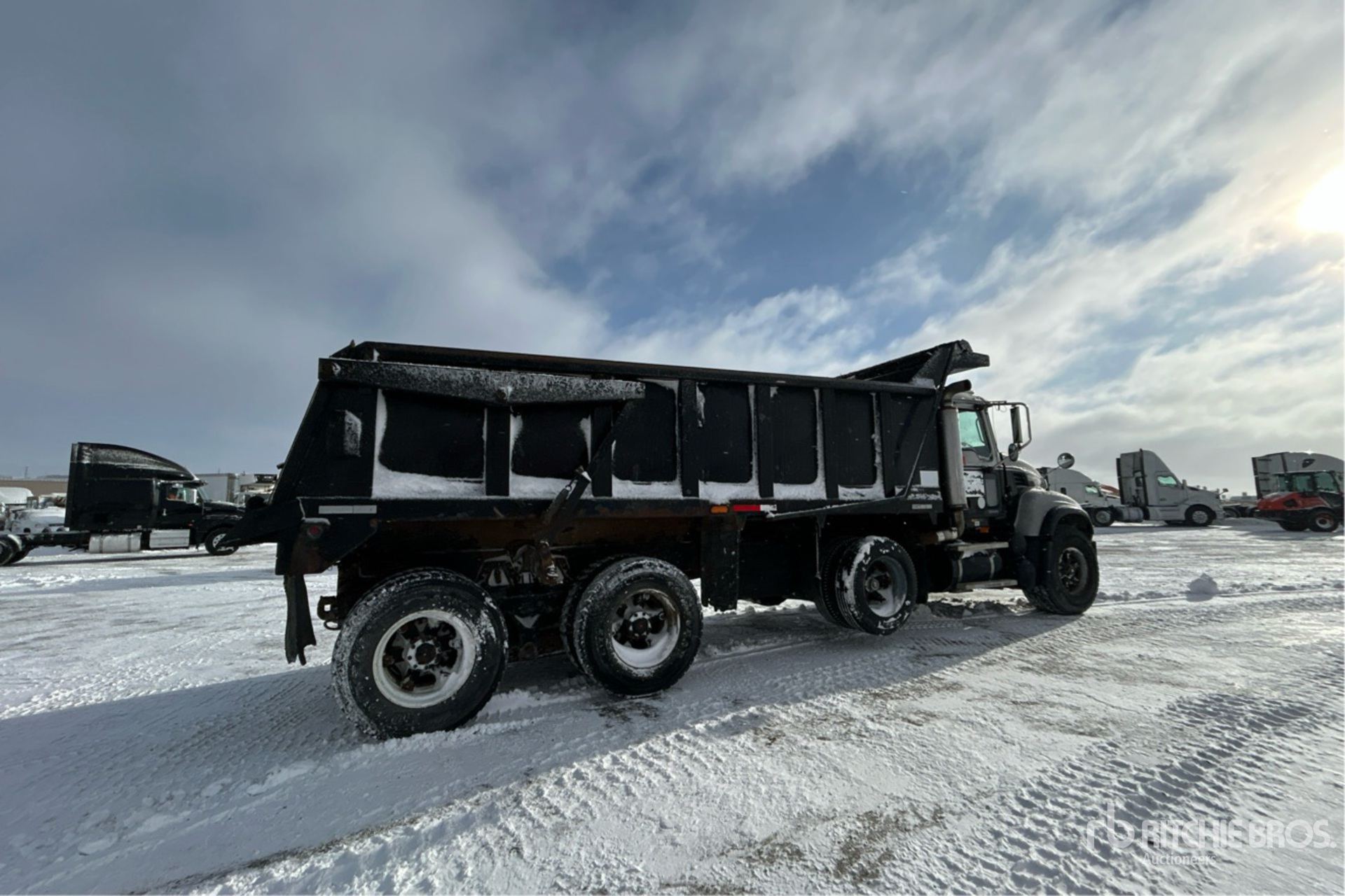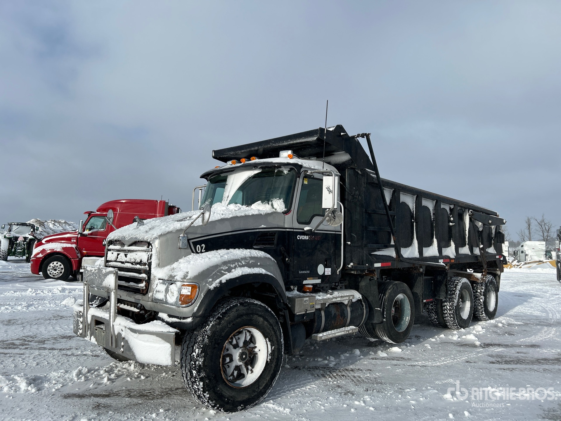 6 Cylinder Diesel Engine, 20451 Engine hrs, Eaton Fuller 8LL Manual Transmission, 9100 kg Front Axle, 20800 kg Rears, 39000 kg GVWR, 425/65R22.5 Front Tires, 11R22.5 Rear Tires, Dual Steering Boxes, Hendrickson Suspension, 263 in Wheelbase, PTO, 19 ft Long x 4 ft High Steel Body, Heated Box, High-Lift Tailgate, Tailgate Chute