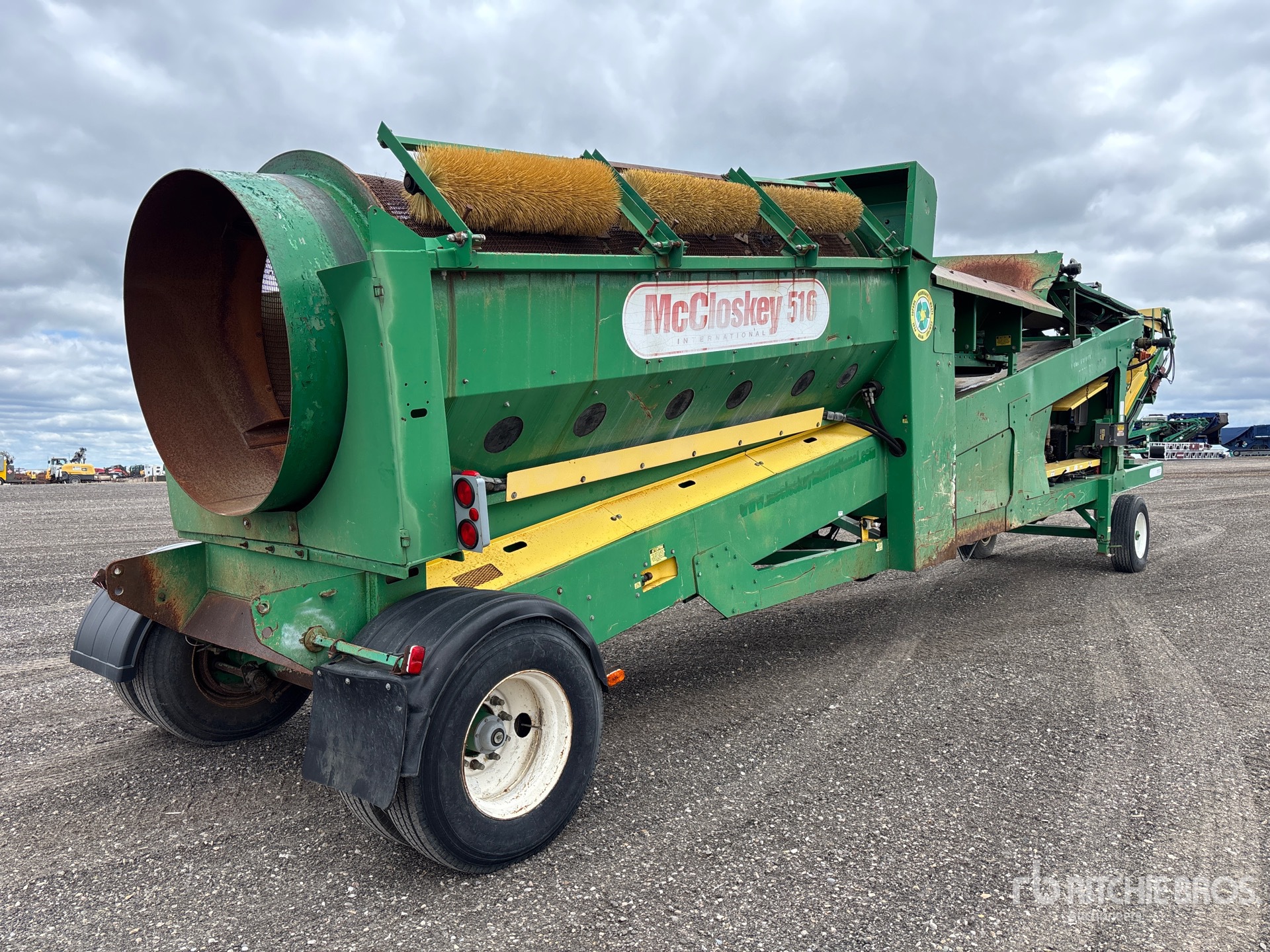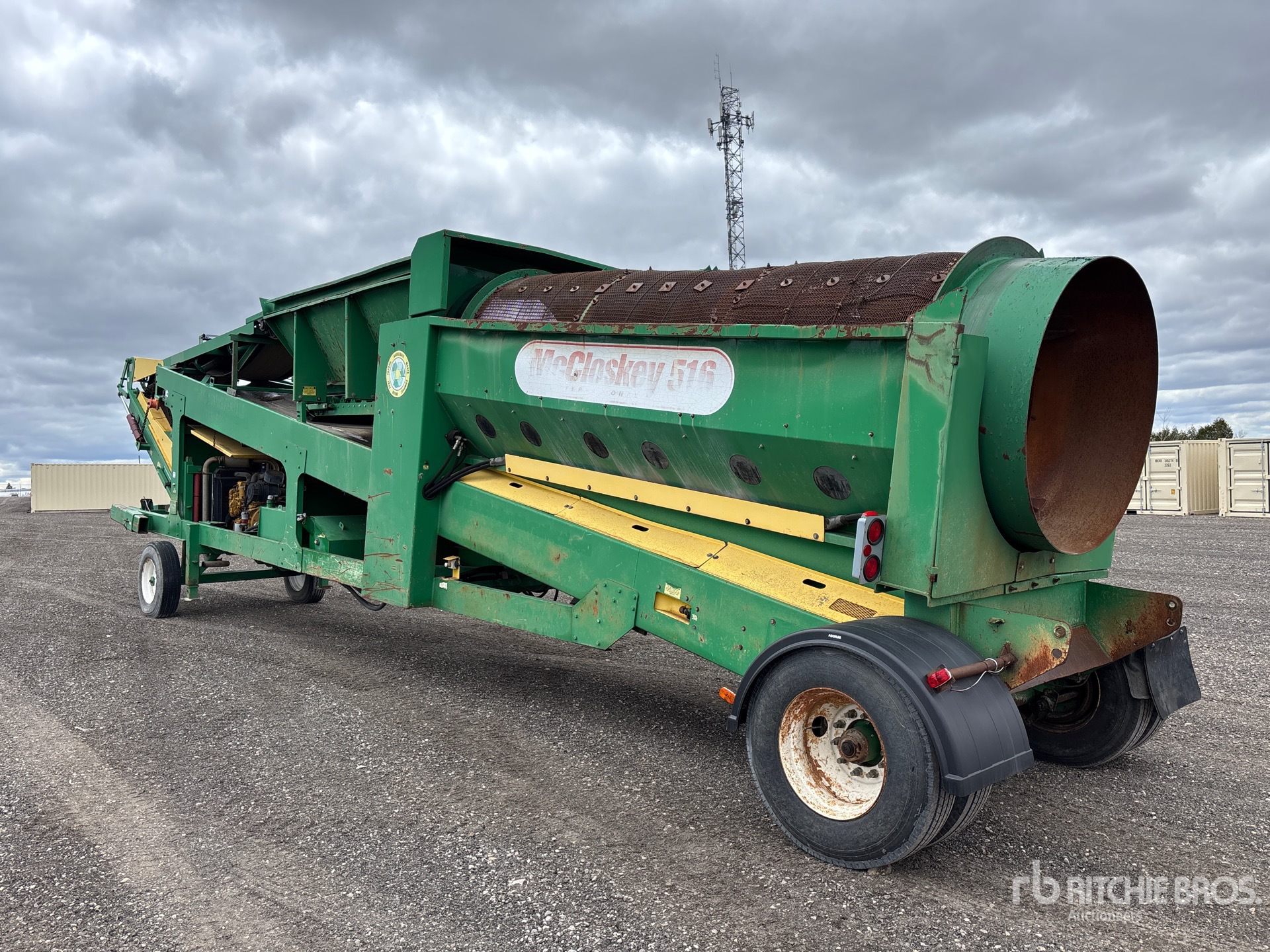 2 ft x 11 ft Belt Feeder Trommel Screen, 30 in Wide Feed Conveyor, 24 in Crusher to Screen Conveyor, 45 in Wide Under Screen Conveyor, x 13 ft Cross Belt Magnet, 4 Cylinder Diesel Engine, Tri/A Carrier, Spring Suspension, Hydraulic Leveling