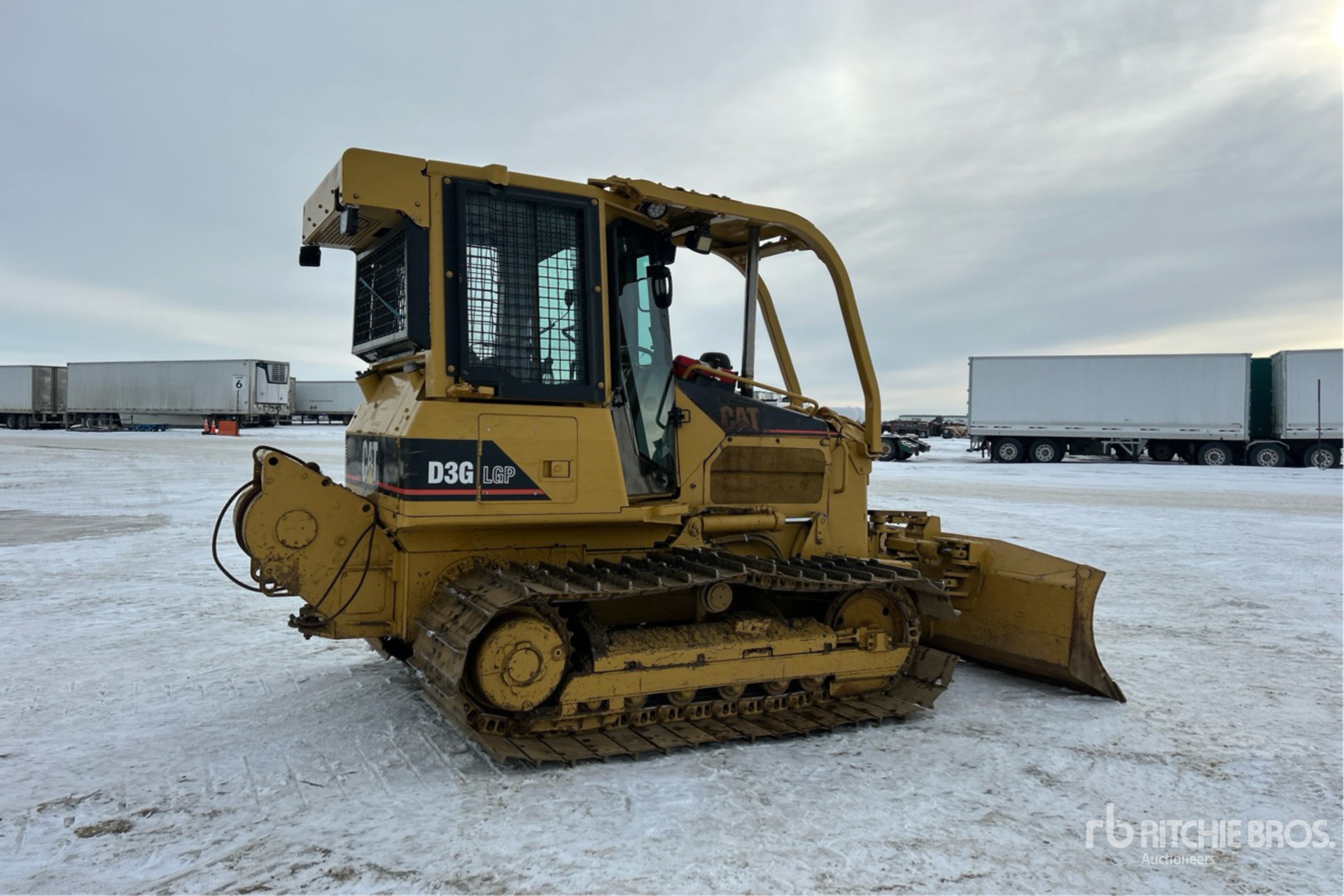 Located in Lane 53 Spot 12, Enclosed Cab, Air Conditioner, Engine Coolant Heater, Sweeps, 124 in Wide PAT Blade, 32 in Single Grouser Track Shoes, Winch