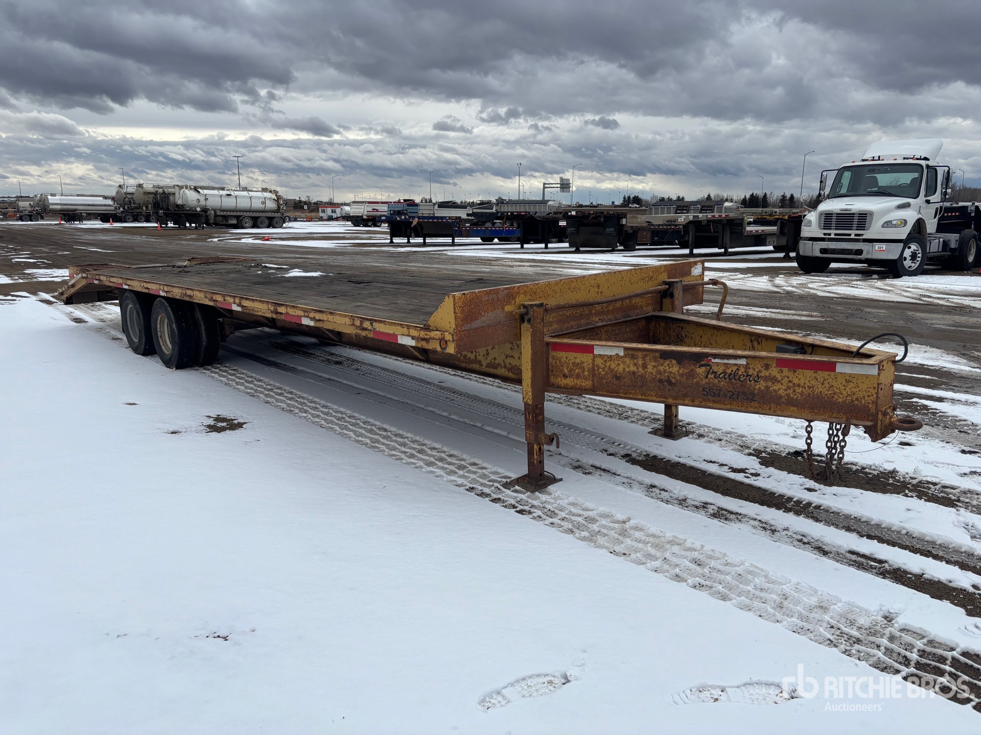 Lunette Ring Hitch, Spring Suspension, Electric Brakes, 25 ft Main Deck, 5 ft Fixed Dovetail, 101 in Overall Deck Width, Deck Over Tires, Spring Assisted Ramps, Wood Flooring, 235/85R16 Tires