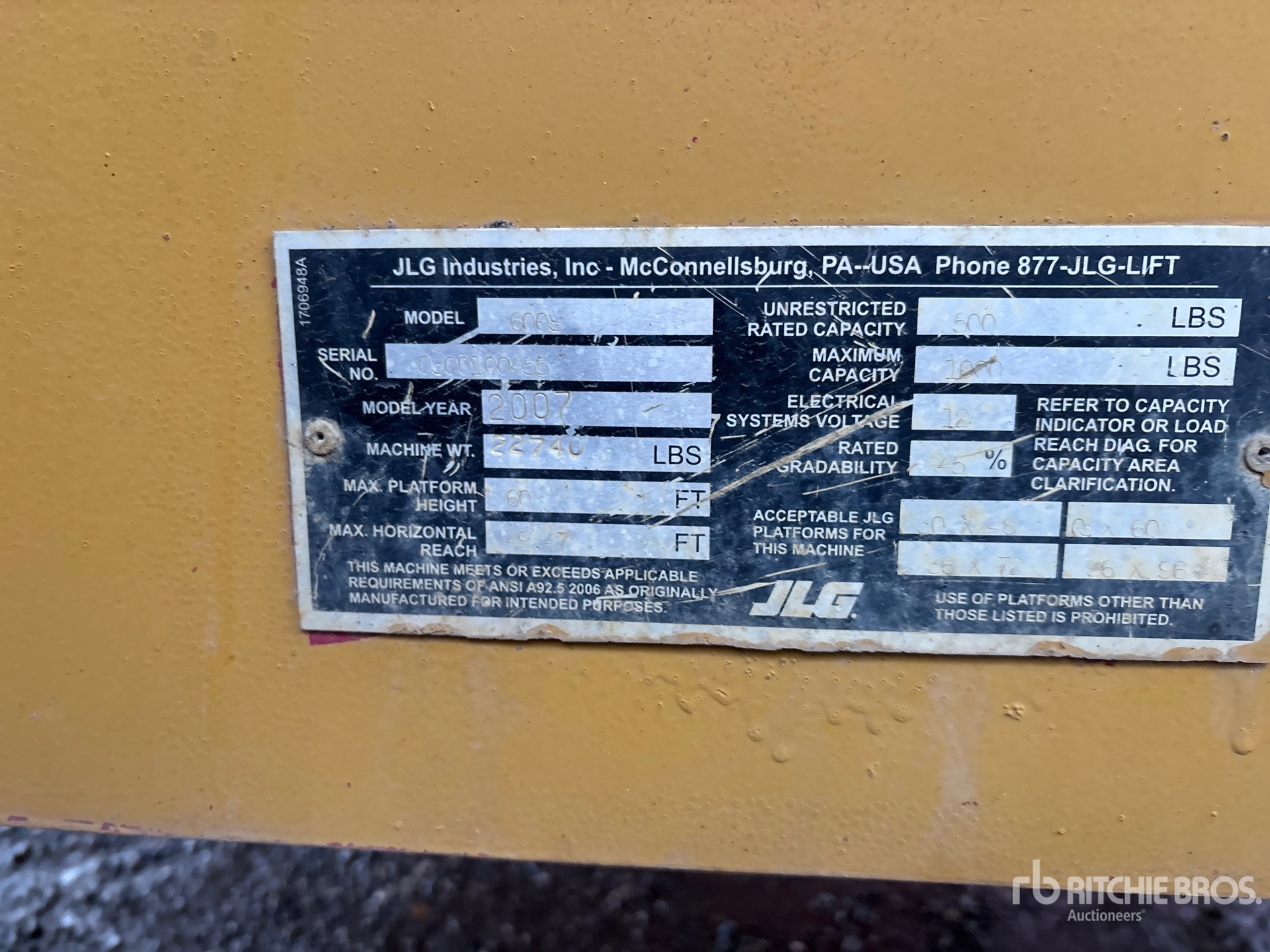 60 ft Max Platform Height, 500 lb Max Weight Capacity, Diesel Engine, 15-19.5 Tires