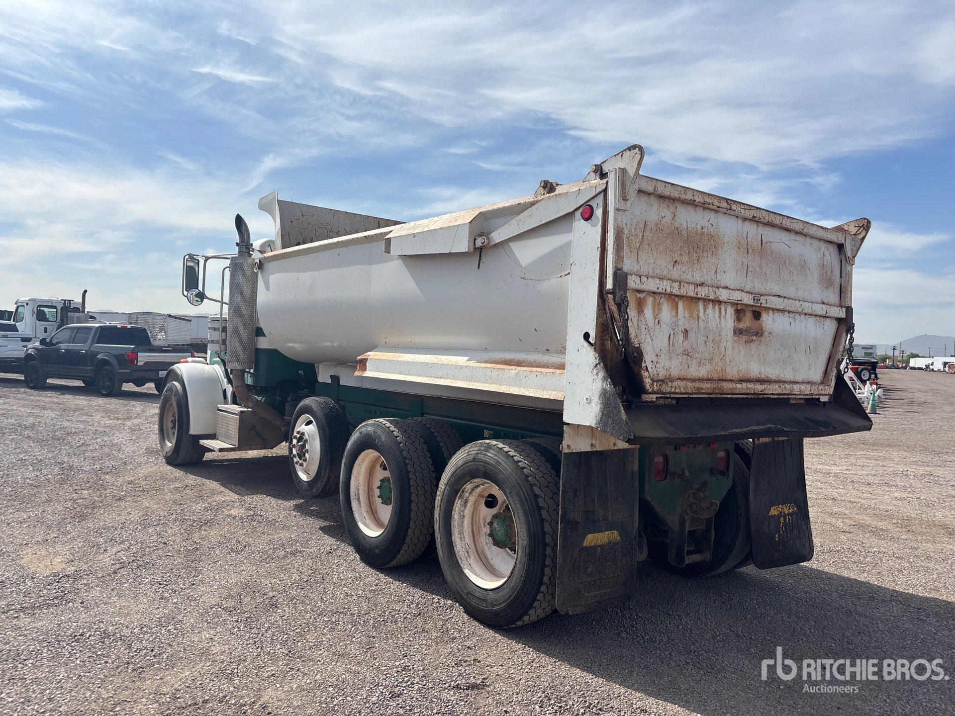 19284 Engine hrs, Eaton Fuller Manual Transmission, Differential Lock, 20000 lb Front Axle, 40000 lb Rears, 66000 lb GVWR, 425/65R22.5 Front Tires, 11R24.5 Rear Tires, Paccar Air Ride Suspension, 234 in Wheelbase, PTO, {values=[14], unitId=14} Long x {values=[4], unitId=14} High Steel Body, Round Bottom, High-Lift Tailgate, Pintle Hitch