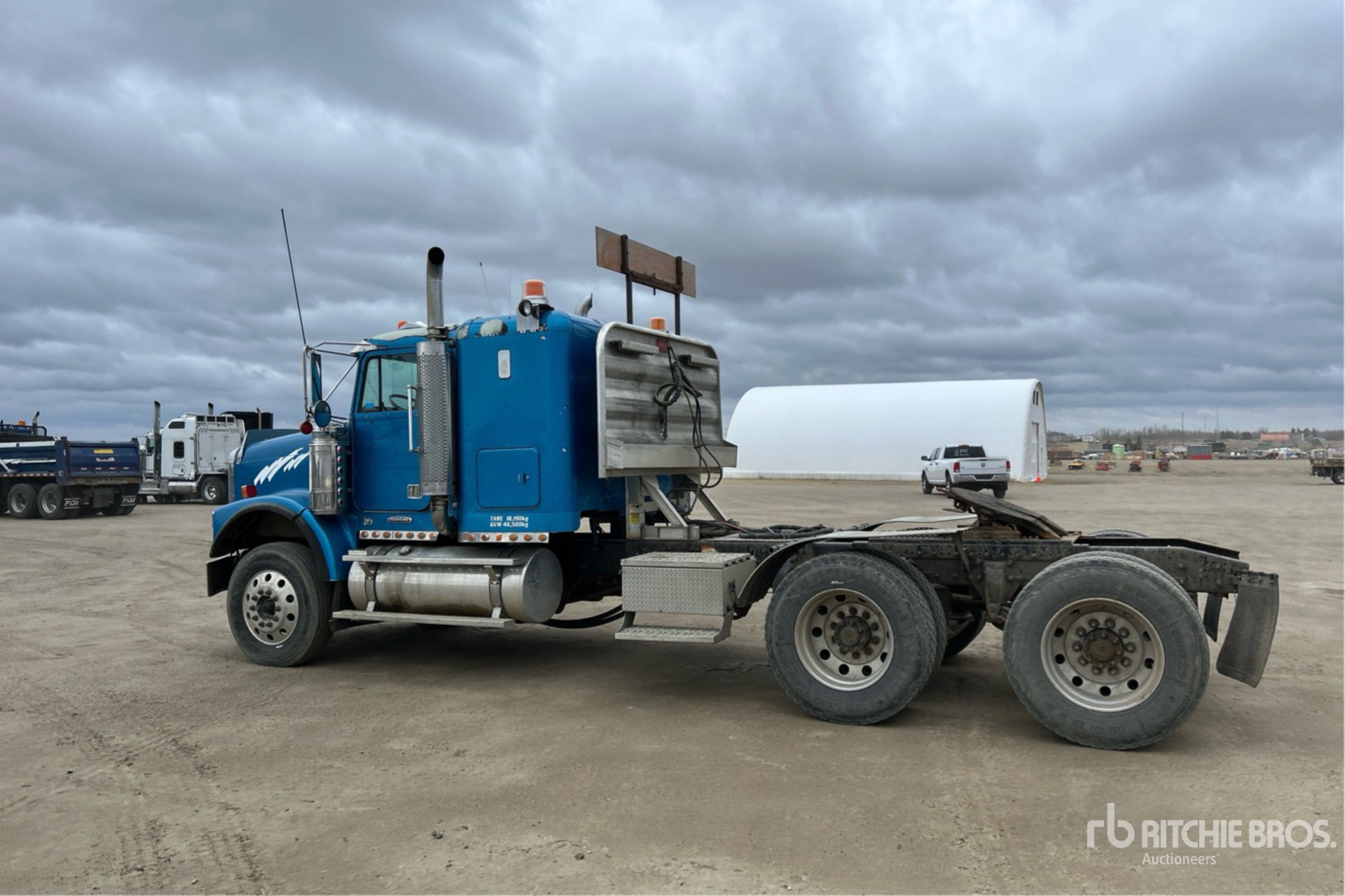 Located in Lane 34 Spot 47, Cat C15 Engine, Eaton Fuller RTLO-18918B 18-Speed Manual Transmission, Meritor RT-46-164PEH Drive Axles, 4.10:1 Axle Ratio, Double Differential Locks, 48 in Flat Top Sleeper Cab, 230 in Wheelbase, Air Suspension, Aluminum Wheels, 11R24.5, Wet Kit, Air Sliding 5th Wheel, Dual Fuel Tanks, Headache Rack