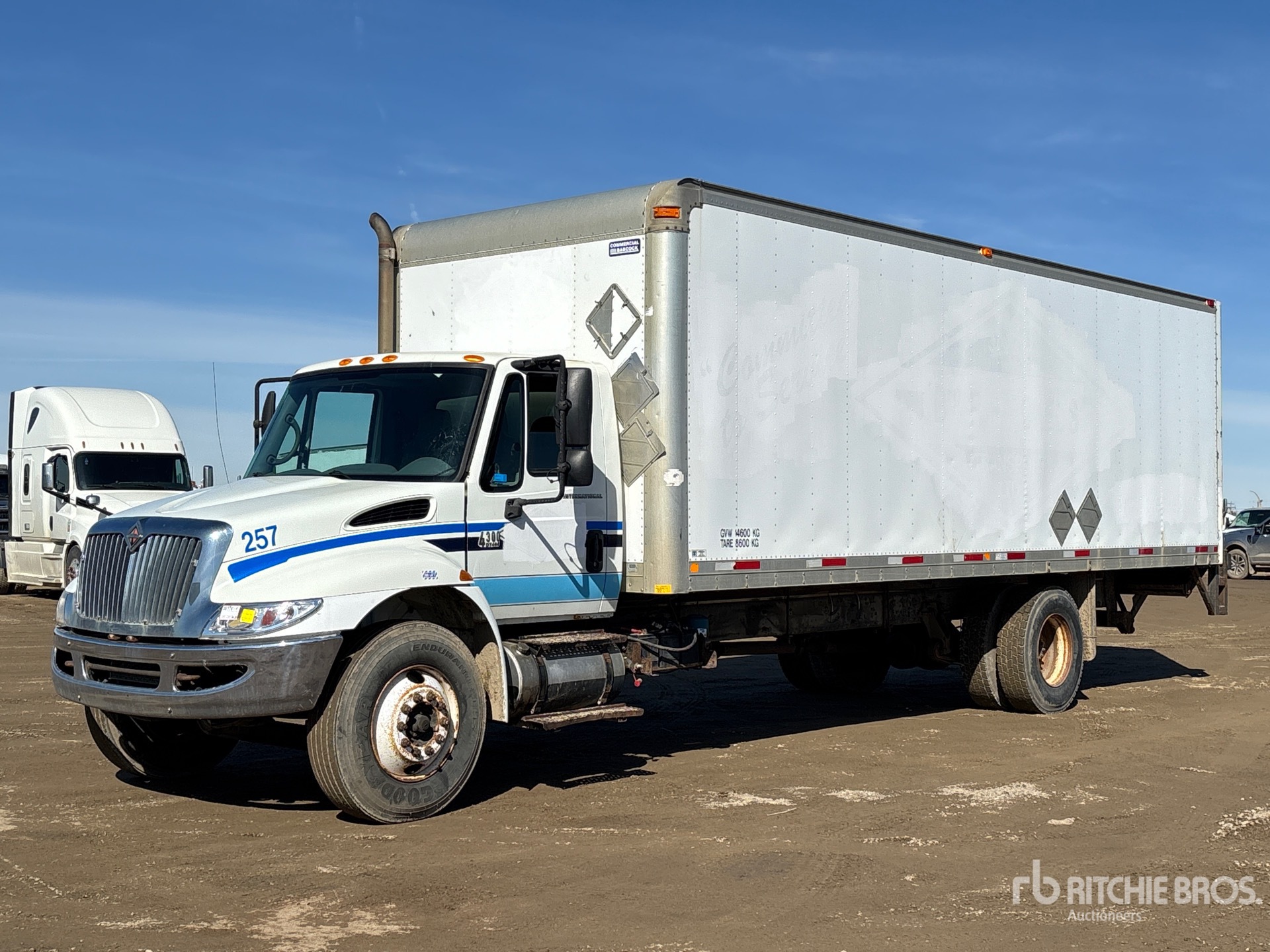 Located in Lane 44 Spot 11, International 6 Cylinder 7.6 L Diesel Engine, 13704 Engine hrs, Automatic Transmission, 12000 lb Front Axle, 21000 lb Rears, 33000 lb GVWR, 11R22.5, Air Ride Suspension, 265 in Wheelbase, Commercial Babcock 26 ft x 102 in Wide x 86 in High Body, Liftgate