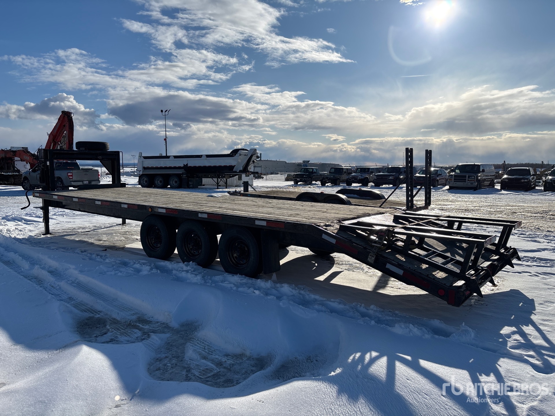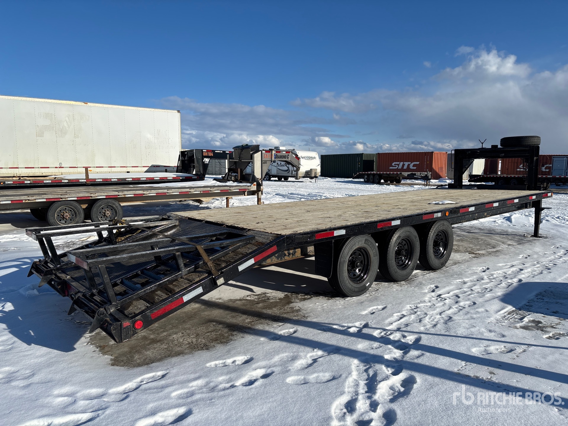 Torsion Axle, Electric Brakes, 24 ft Main Deck, 5 ft 5 in Fixed Dovetail, 96 in Usable Deck Width, 100 in Overall Deck Width, Deck Over Tires, Manual Ramps, Wood Flooring, 235/80R16 Tires, 24150 lb GVWR
