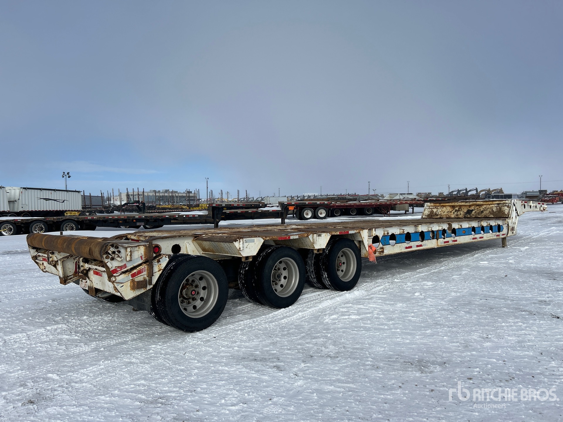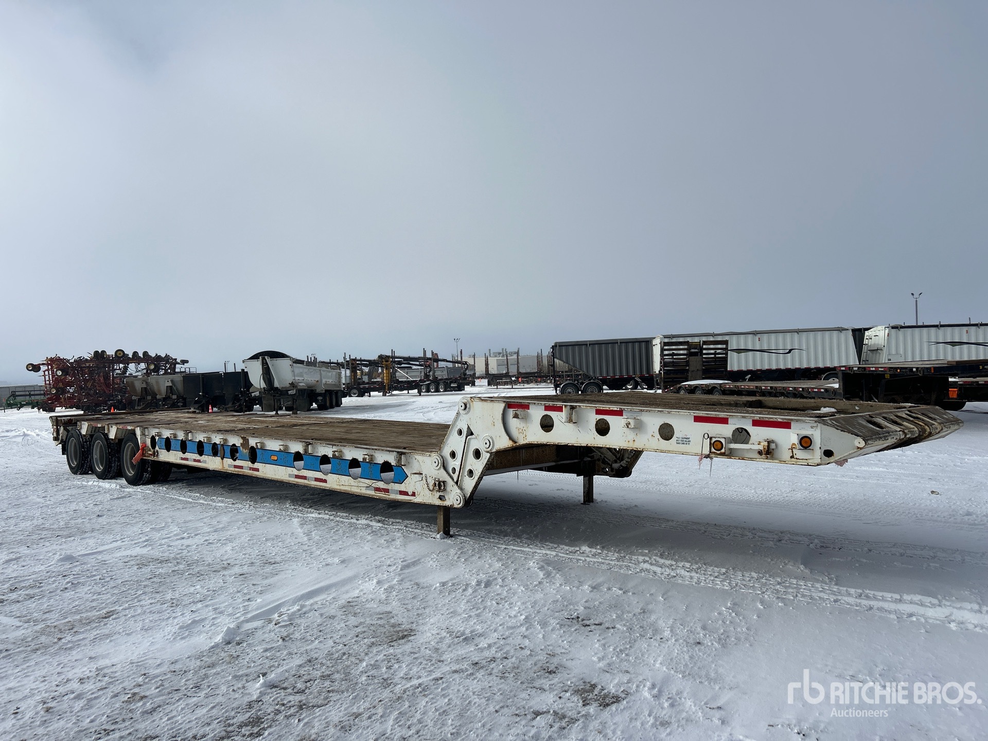 Located in Lane 23 Spot 4, Air Ride Suspension, 11 ft Upper Deck, 35 ft Main Deck, 5 ft 2-Position Dovetail, 120 in Overall Deck Width, Deck Over Tires, Pickup Throat, Fold-Up Dolly Legs, Center Roller, Tail Roller, Aluminum Wheels, 275/70R22.5 Tires, 55000 kg GVWR, Complete-Dispersal-for-T-Ruckin-Oilfield-Services-Ltd