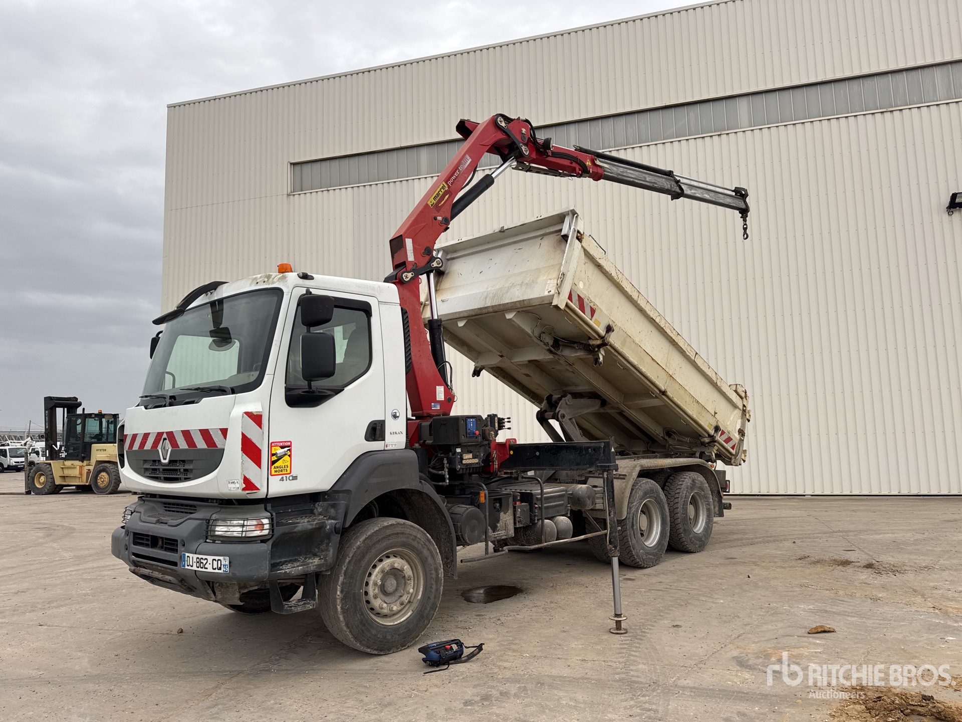 2008 HMF 1300K2 2700 kg on 2008 Renault Kerax 410 DXi 6x4 Camion Benne Avec Grue Dump Truck with Crane