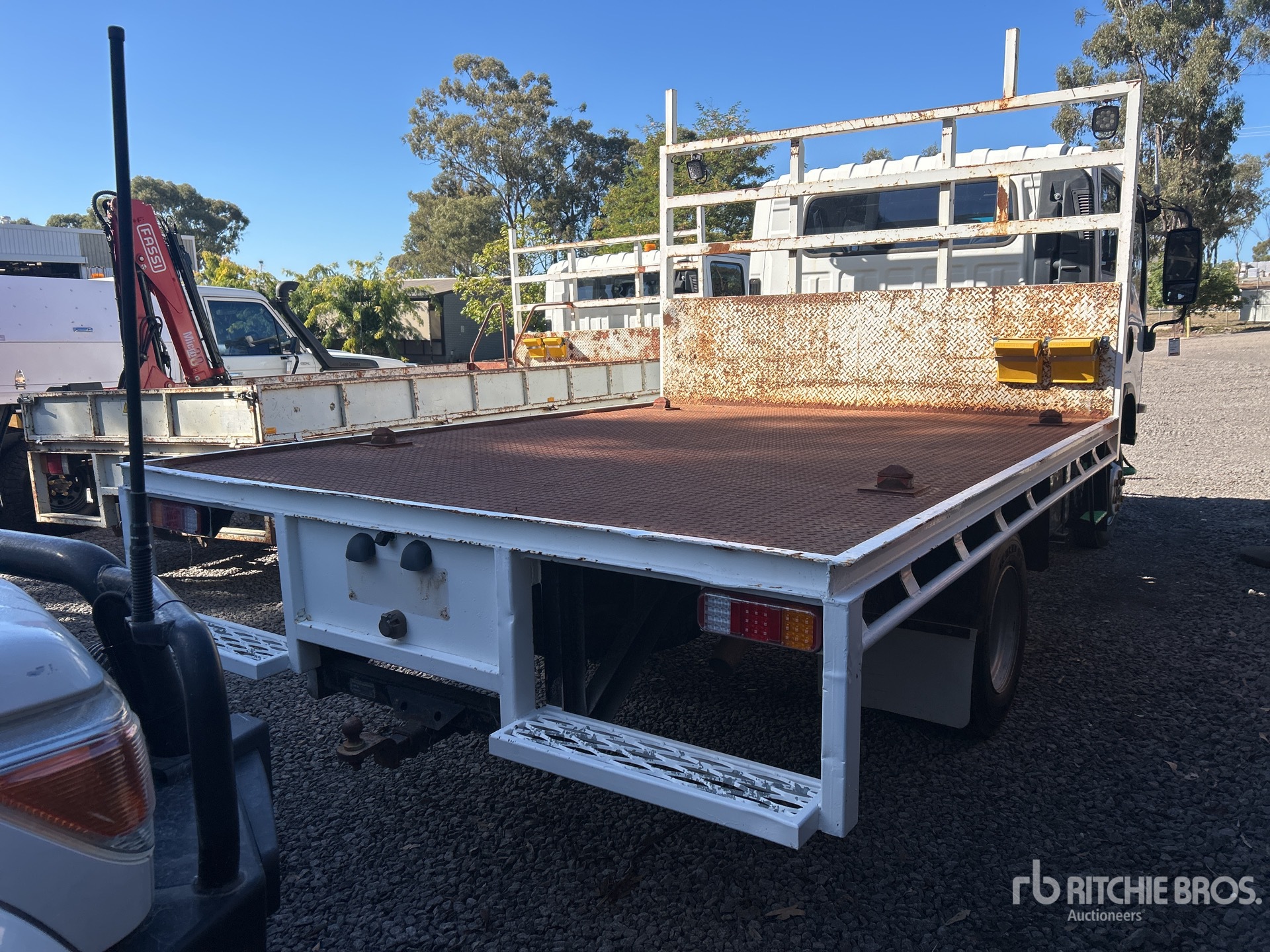 4 Cylinder Diesel Engine, 5-Speed Manual Transmission, 8.5R17.5, Spring Suspension, 3400 mm Wheelbase, 3200 mm x 2450 mm Bed, Container Pins, Ball Hitch, GVM 6.5 t