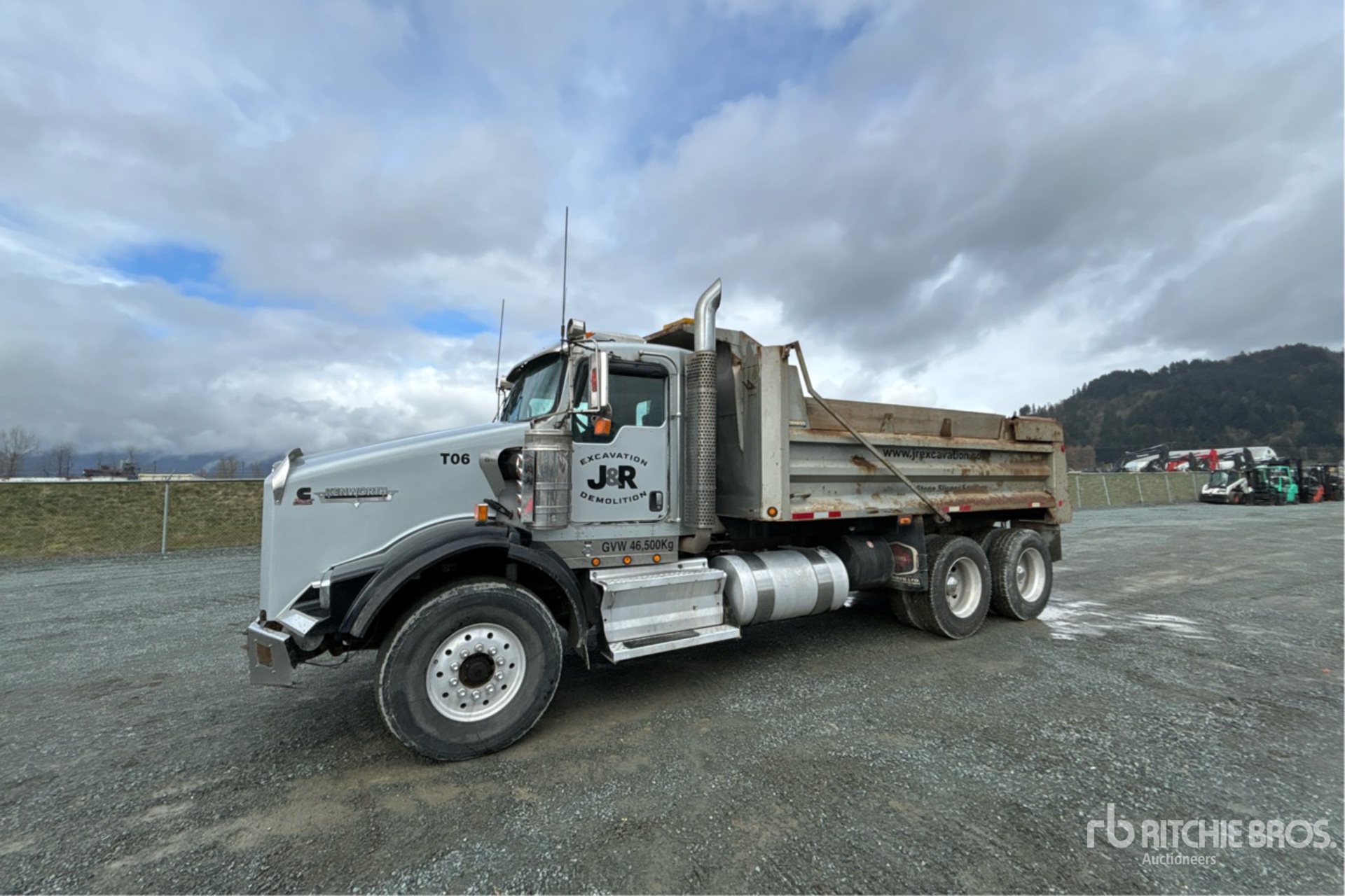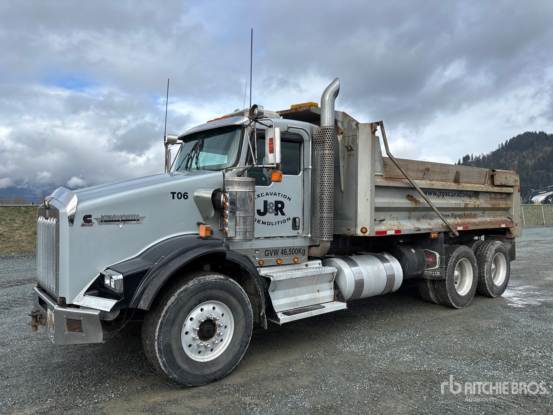 Cummins ISX 6 Cylinder 15 L Diesel 525 hp Engine, 2007 US EPA Label, 3899 Engine hrs, Engine Brake, Eaton Fuller 18-Speed Manual Transmission, Double Differential Locks, 9072 kg Front Axle, 20866 kg Rears, 29938 kg GVWR, Air Ride Cab, Aluminum Wheels, 425/65R22.5 Front Tires, 12R24.5 Rear Tires, Dual Steering Boxes, Rubber over Walking Beam Suspension, 222 in Wheelbase, PTO, Nahanni 16 ft 6 in Long x 3 ft 7 in High Steel Body, Air Powered Roll Tarp, High-Lift Tailgate, Pintle Hitch