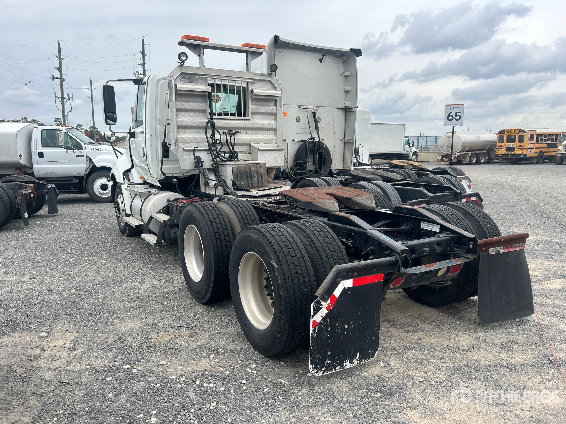 Located in Lane 65 Spot 29, Cummins ISX 450 hp Engine, 2008 US EPA Label, Eaton Fuller 10-Speed Manual Transmission, 12350 lb Front Axle, 40000 lb Rears, 52350 lb GVWR, Engine Brake, 187 in Wheelbase, Air Suspension, Aluminum Outer Wheels, 11R22.5 Front Tires, 11R22.5 Rear Tires, Air Sliding 5th Wheel, Dual Fuel Tanks, Headache Rack