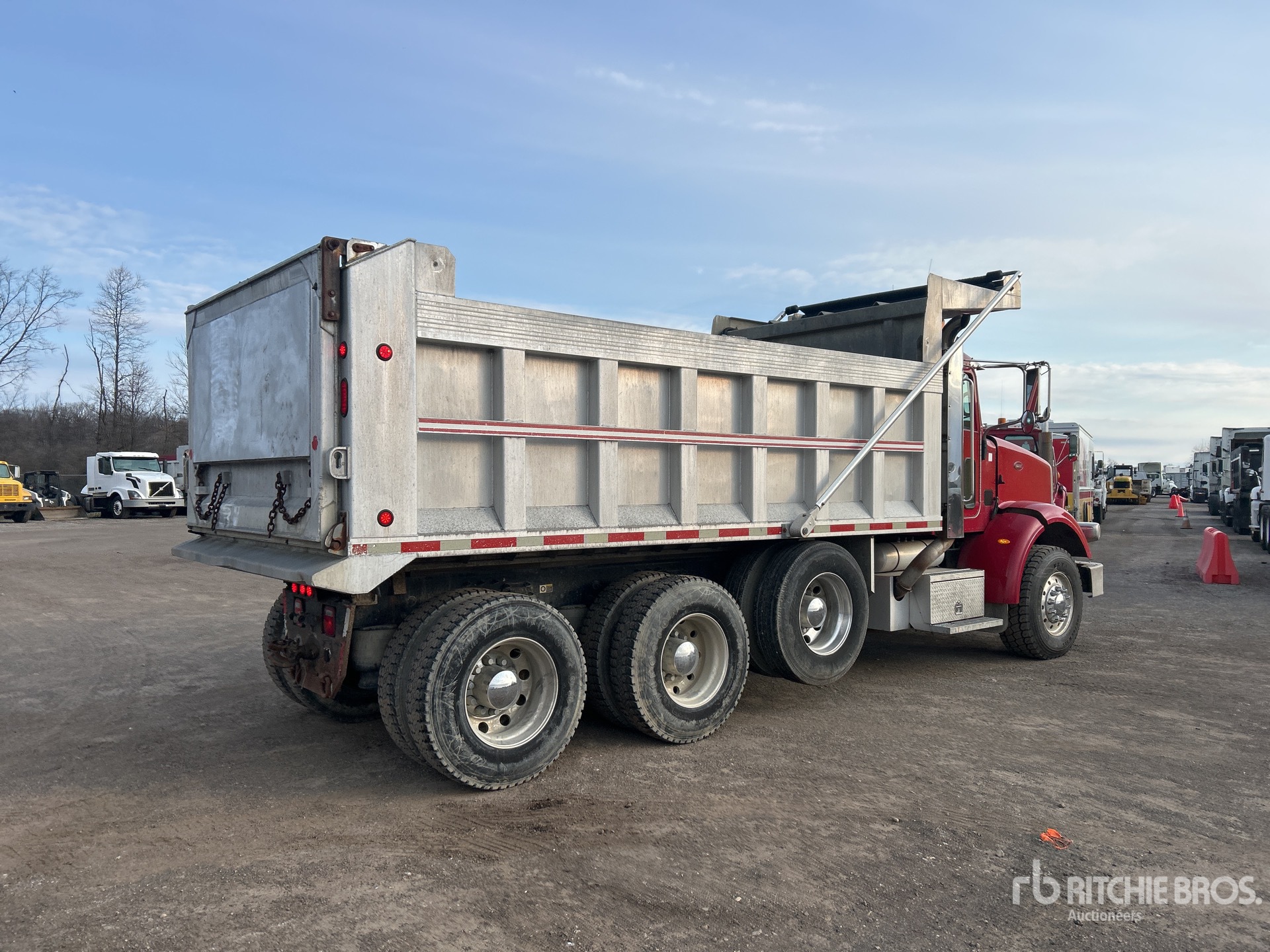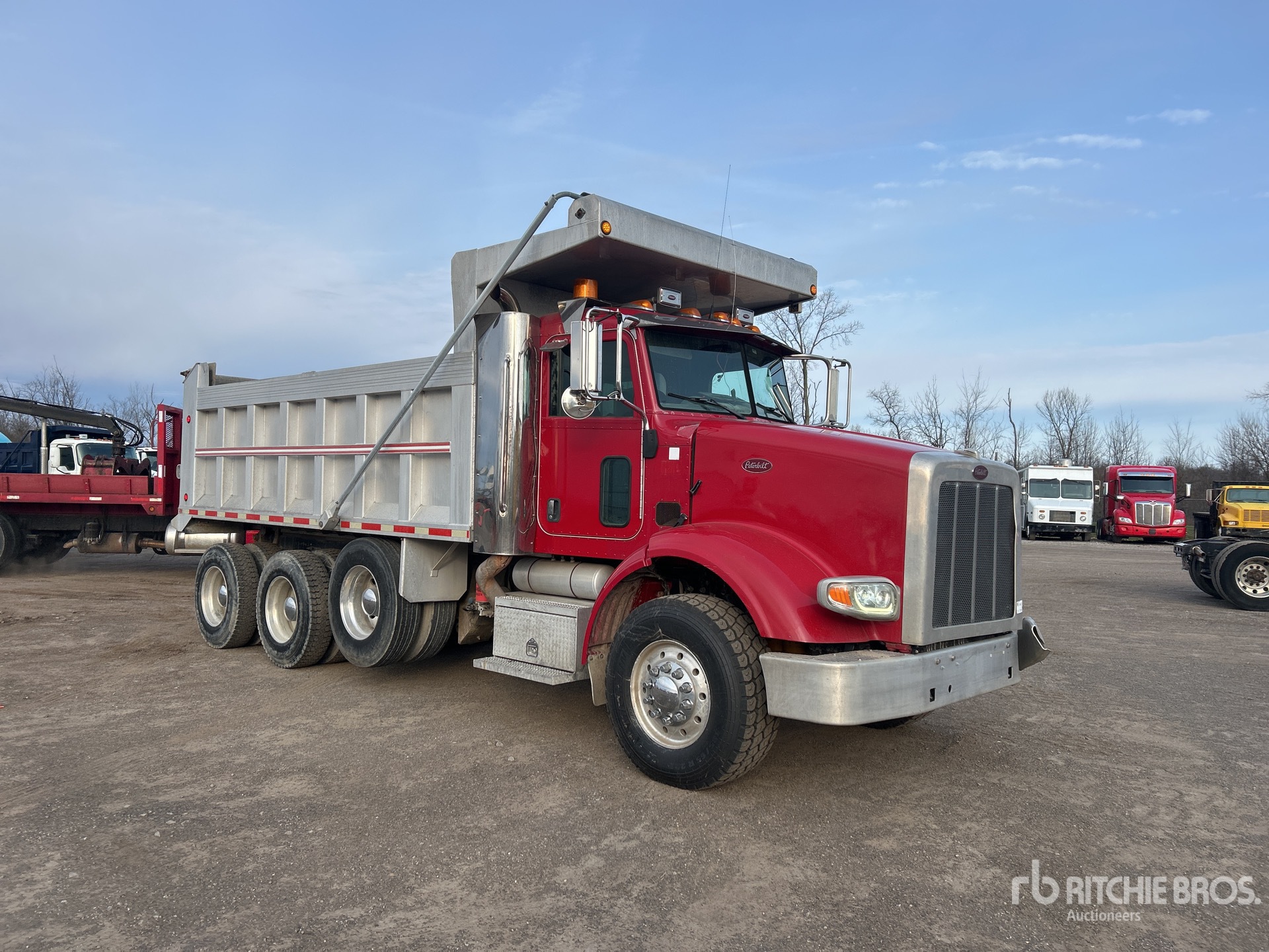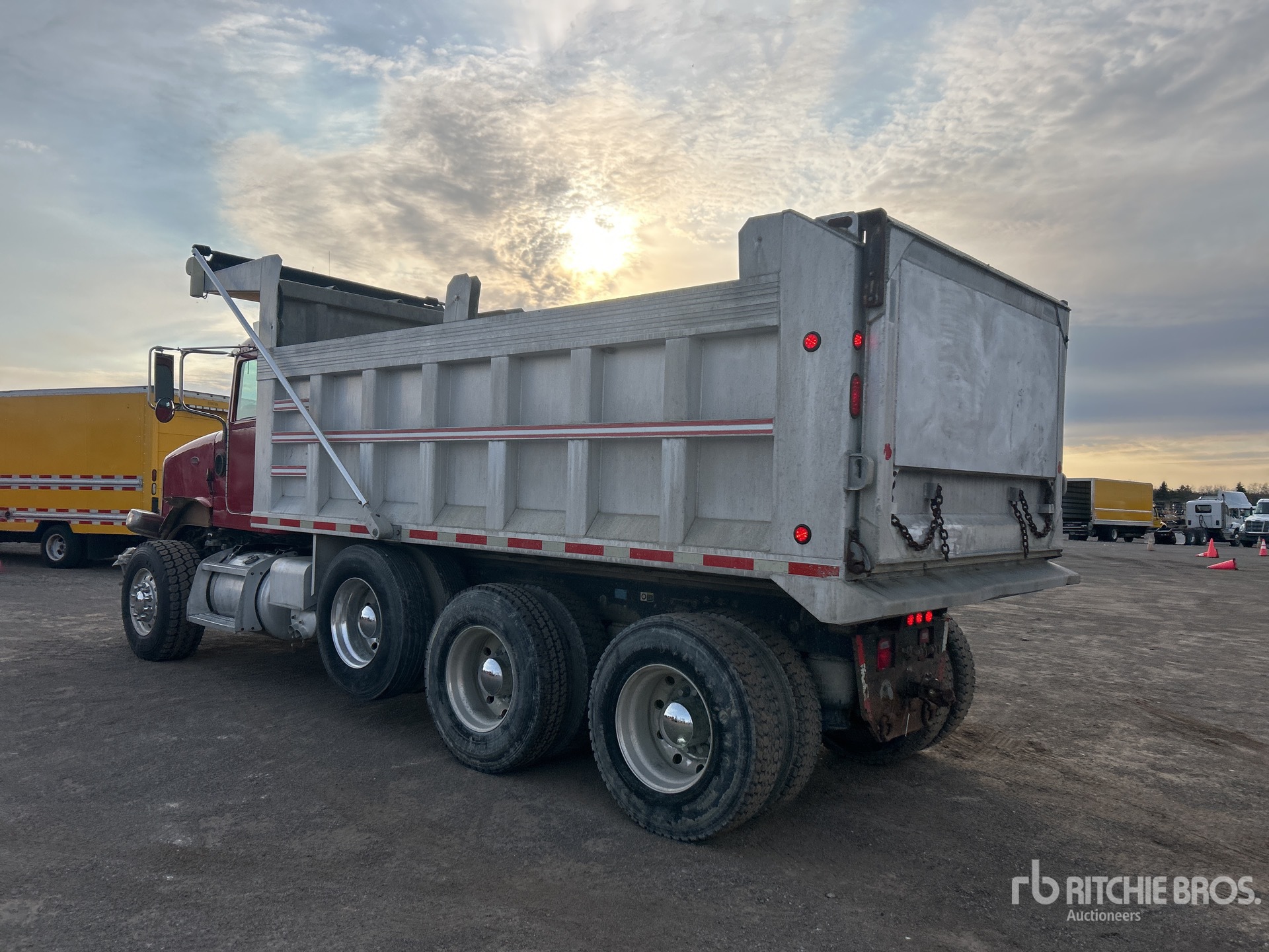 Cat 6 Cylinder Diesel Engine, Engine Brake, Eaton Fuller FRO-17210C 10-Speed Manual Transmission, Differential Lock, 18740 lb Front Axle, 40000 lb Rears, 58740 lb GVWR, Aluminum Outer Wheels, 385/65R22.5 Front Tires, 11R22.5 Rear Tires, Air Lift Tag Axle, Air Ride Suspension, 211 in Wheelbase, PTO, Hydraulic System, 16 ft 6 in Long x 4 ft High Aluminium Body, Round Bottom, Electric Roll Tarp, Swing Tailgate, Pintle Hitch