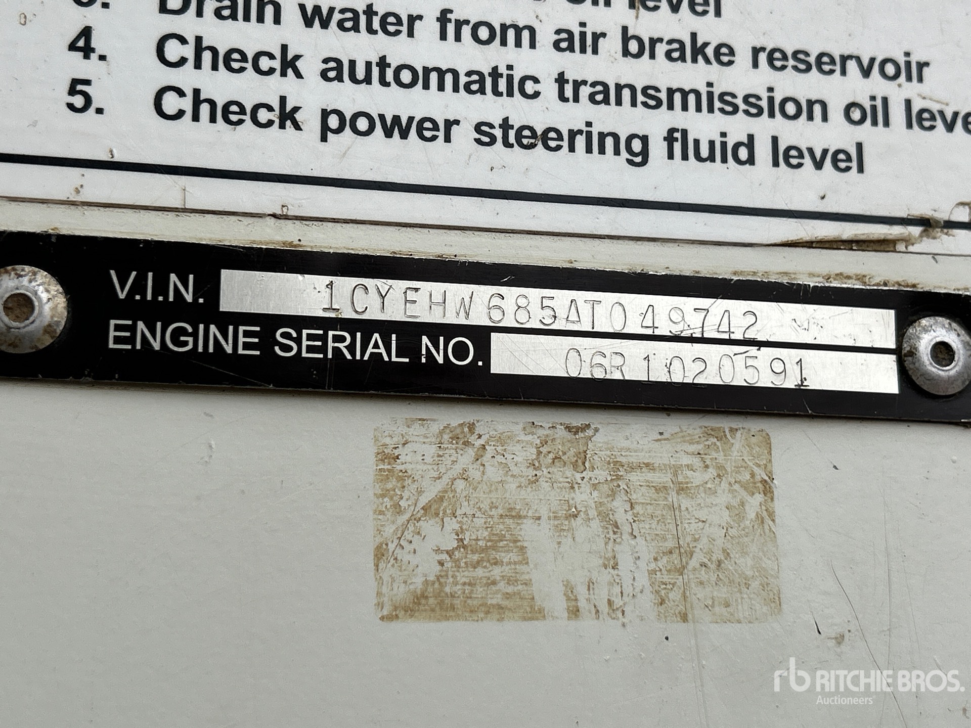 The detailed equipment information is limited in scope, and Ritchie Bros. Auctioneers has not inspected any aspects or components of the equipment other than those expressly set forth herein. Unless expressly stated, we make no representations or warranties, express or implied, concerning the equipment or its components, including without limitation any representations or warranties concerning functionality, conformity or compliance with any safety standard or requirement of any applicable authority or regulatory body, fitness for any particular purpose, or merchantability. You are strongly advised to perform your own detailed inspection of the equipment prior to bidding.
