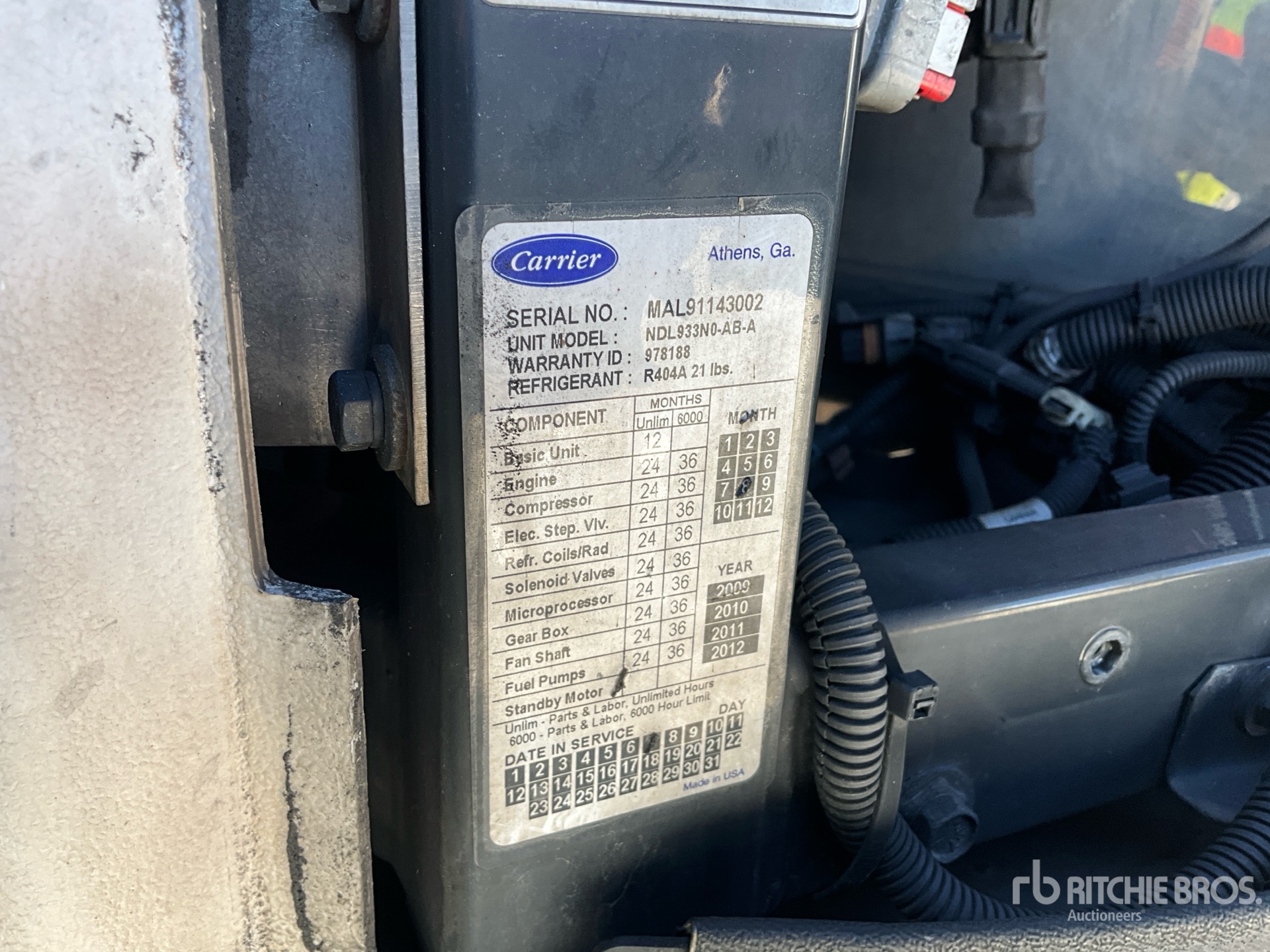 Refrigeration Unit Serial Number