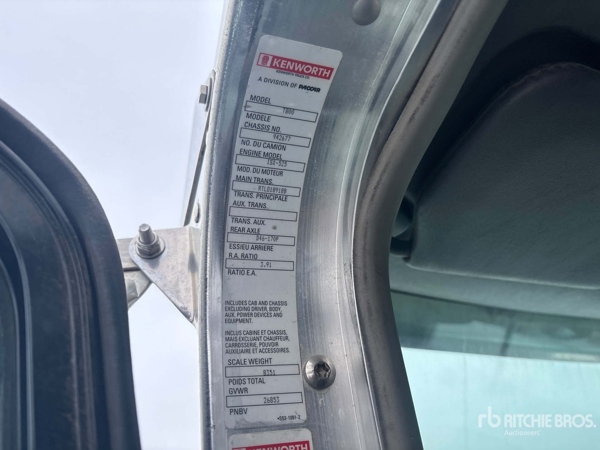 The detailed equipment information is limited in scope, and Ritchie Bros. Auctioneers has not inspected any aspects or components of the equipment other than those expressly set forth herein. Unless expressly stated, we make no representations or warranties, express or implied, concerning the equipment or its components, including without limitation any representations or warranties concerning functionality, conformity or compliance with any safety standard or requirement of any applicable authority or regulatory body, fitness for any particular purpose, or merchantability. You are strongly advised to perform your own detailed inspection of the equipment prior to bidding.