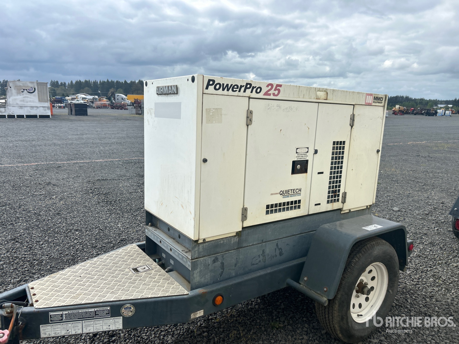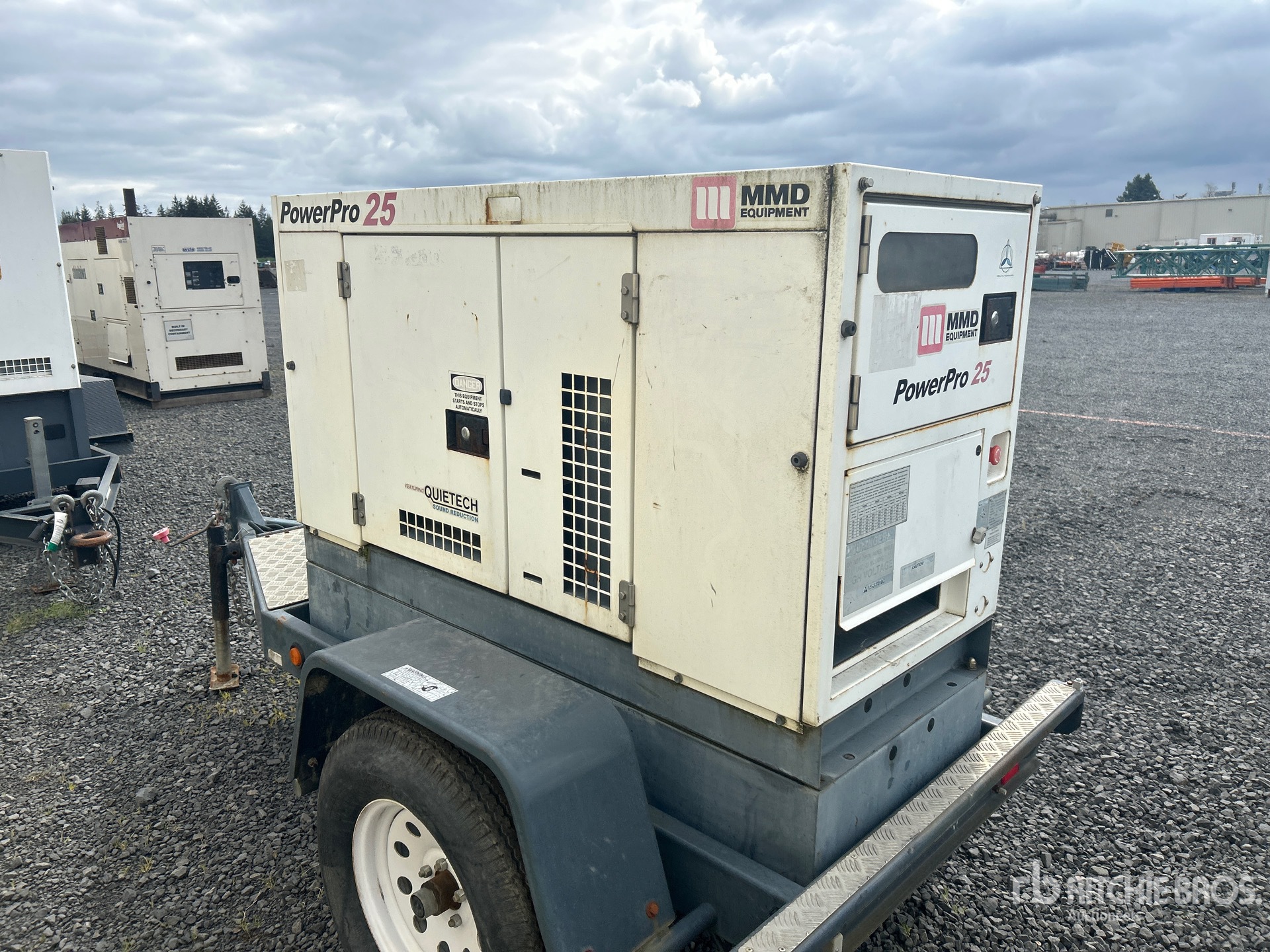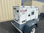 2011 US EPA Label, Isuzu 4 Cylinder 34 kW Diesel Engine, 25 kVA/ Rated 3 Phase Output, 480 V / 240 V Rated Voltage, 240 V & 120 V Receptacles, Sound Attenuated, Lunette Ring Carrier Trailer