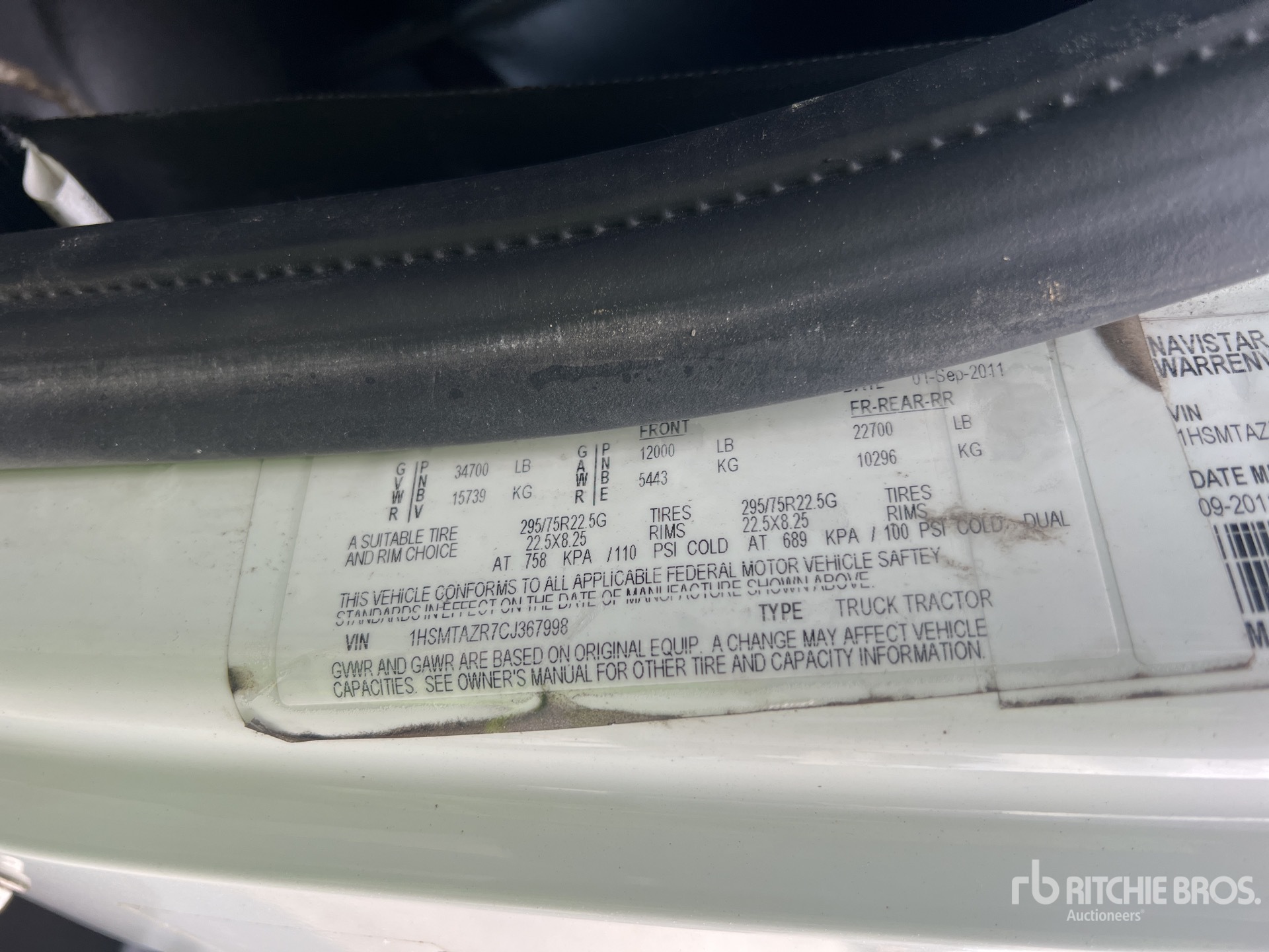 International maxxforce9 315 hp Engine, 2011 US EPA Label, Eaton Fuller 10-Speed Manual Transmission, 12000 lb Front Axle, 22700 lb Rears, 34700 lb GVWR, 151 in Wheelbase, Spring Suspension, 275/80R22.5 Front Tires, 295/75R22.5 Rear Tires