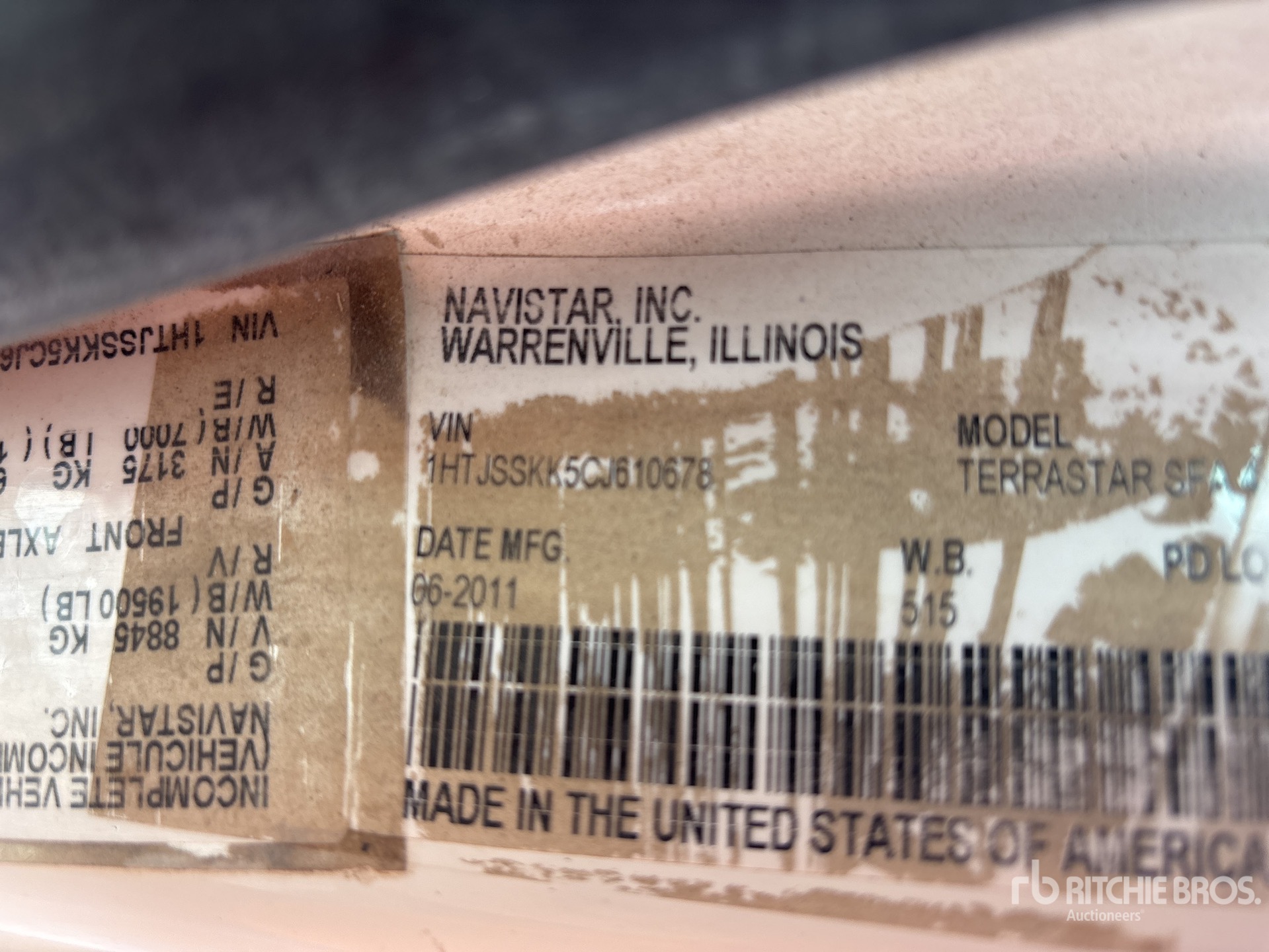 The detailed equipment information is limited in scope, and Ritchie Bros. Auctioneers has not inspected any aspects or components of the equipment other than those expressly set forth herein. Unless expressly stated, we make no representations or warranties, express or implied, concerning the equipment or its components, including without limitation any representations or warranties concerning functionality, conformity or compliance with any safety standard or requirement of any applicable authority or regulatory body, fitness for any particular purpose, or merchantability. You are strongly advised to perform your own detailed inspection of the equipment prior to bidding.