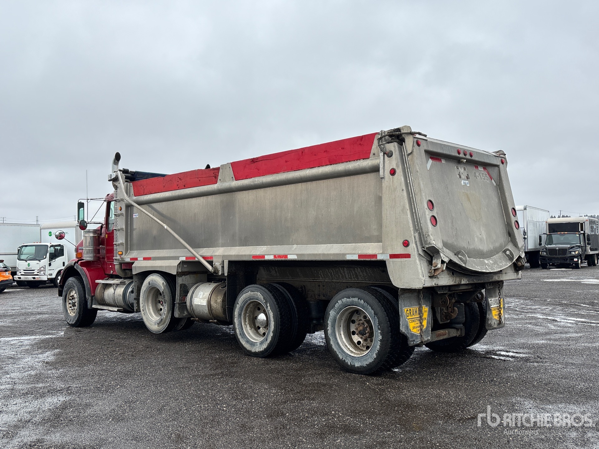Located in Lane 13 Spot 6, Cummins ISX15 6 Cylinder 15 L Diesel 485 hp Engine, 2011 US EPA Label, Requires Diesel Exhaust Fluid, 20830 Engine hrs, Engine Brake, Eaton Fuller 18-Speed Manual Transmission, Double Differential Locks, 20000 lb Front Axle, 46000 lb Rears, 66000 lb GVWR, 425/65R22.5 Front Tires, 11R22.5 Rear Tires, Steerable Air Lift Pusher Axle, Dual Steering Boxes, Air Ride Suspension, 272 in Wheelbase, PTO, 22 ft Long x 4 ft High Aluminium Body, Electric Roll Tarp