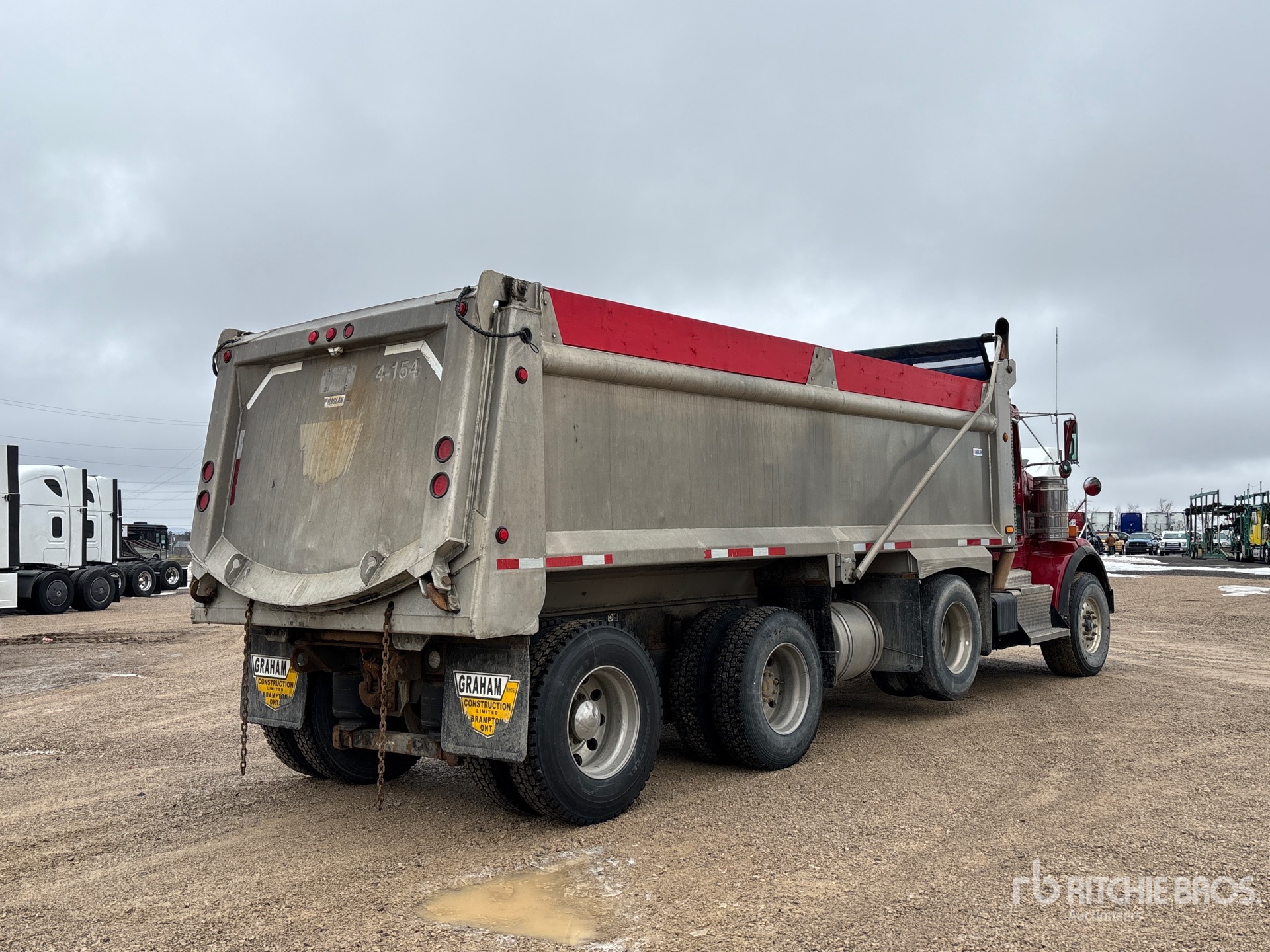 Located in Lane 13 Spot 3, Cummins ISX15 6 Cylinder 15 L Diesel 485 hp Engine, 2011 US EPA Label, Requires Diesel Exhaust Fluid, 21358 Engine hrs, Engine Brake, Eaton Fuller RTLO-18918B 18-Speed Manual Transmission, Double Differential Locks, 20000 lb Front Axle, 46000 lb Rears, 4.10:1 Axle Ratio, 66000 lb GVWR, Air Ride Cab, 425/65R22.5 Front Tires, 11R22.5 Rear Tires, Steerable Air Lift Pusher Axle, Dual Steering Boxes, Double Frame, Hendrickson Air Ride Suspension, 272 in Wheelbase, PTO, 22 ft Long x 4 ft High Aluminium Body, Air Powered Roll Tarp, Pintle Hitch