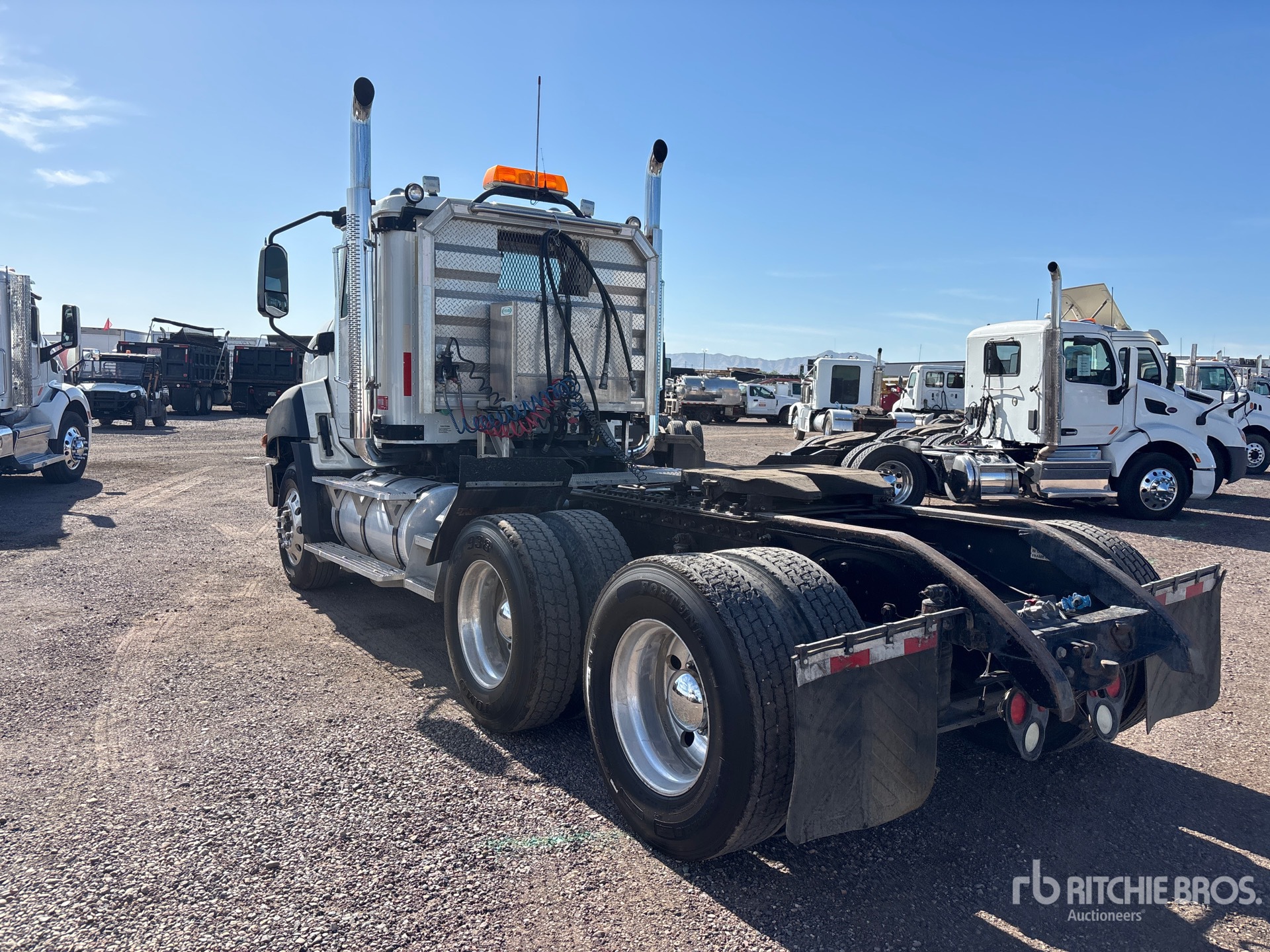 Located in Lane 16 Spot 34, Cat CT13 Engine, 9345 Engine hrs, Automated Transmission, 12350 lb Front Axle, 40000 lb Rears, 52350 lb GVWR, Engine Brake, Differential Lock, 169 in Wheelbase, Aluminum Wheels, 295/75R22.5, Air Sliding 5th Wheel, Headache Rack