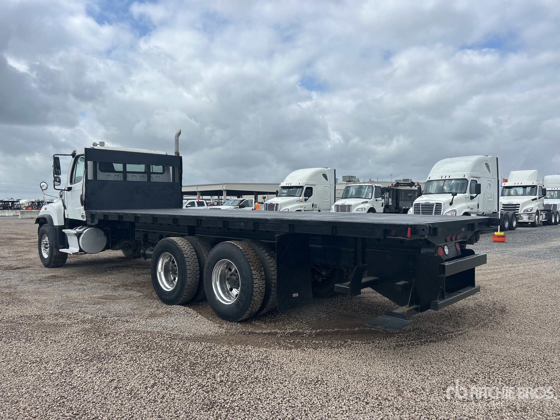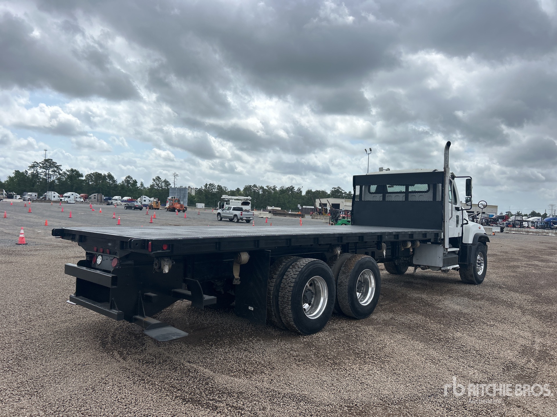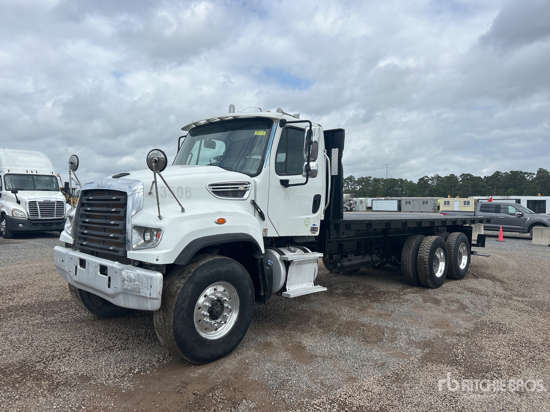 Located in Lane 17 Spot 22, Cummins ISL 6 Cylinder 8.9 L Diesel 345 hp Engine, 2013 US EPA Label, Requires Diesel Exhaust Fluid, 16822 Engine hrs, Engine Brake, Allison 4500 Automatic Transmission, 20000 lb Front Axle, 36000 lb Rears, Dana DSH44 Drive Axles, 5.57:1 Axle Ratio, 56000 lb GVWR, Air Ride Cab, Aluminum Outer Wheels, 425/65R22.5 Front Tires, 11R22.5 Rear Tires, Dual Steering Boxes, Rubber Suspension, 240 in Wheelbase, 24 ft x 96 in Bed, Forklift Mount Kit