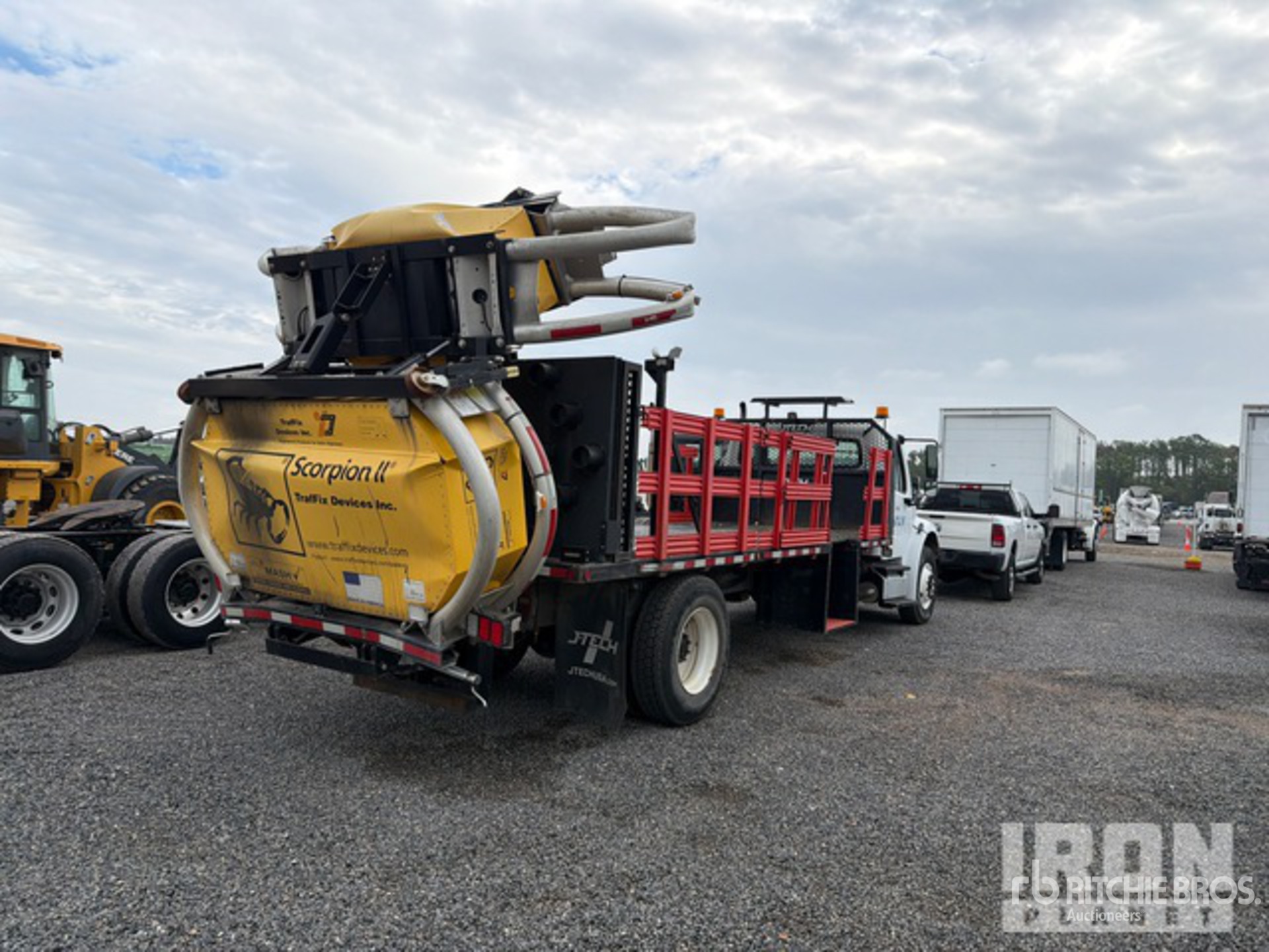 Cummins 6 Cylinder Diesel Engine, US EPA Label, Air Conditioner, Automatic Transmission, 10000 lb Front Axle, 19000 lb Rears, 26000 lb GVWR, 11R22.5 Front Tires, 11R22.5 Rear Tires, Air Ride Suspension, 254 in Wheelbase, Flatbed, In-Cab Attenuator Controller