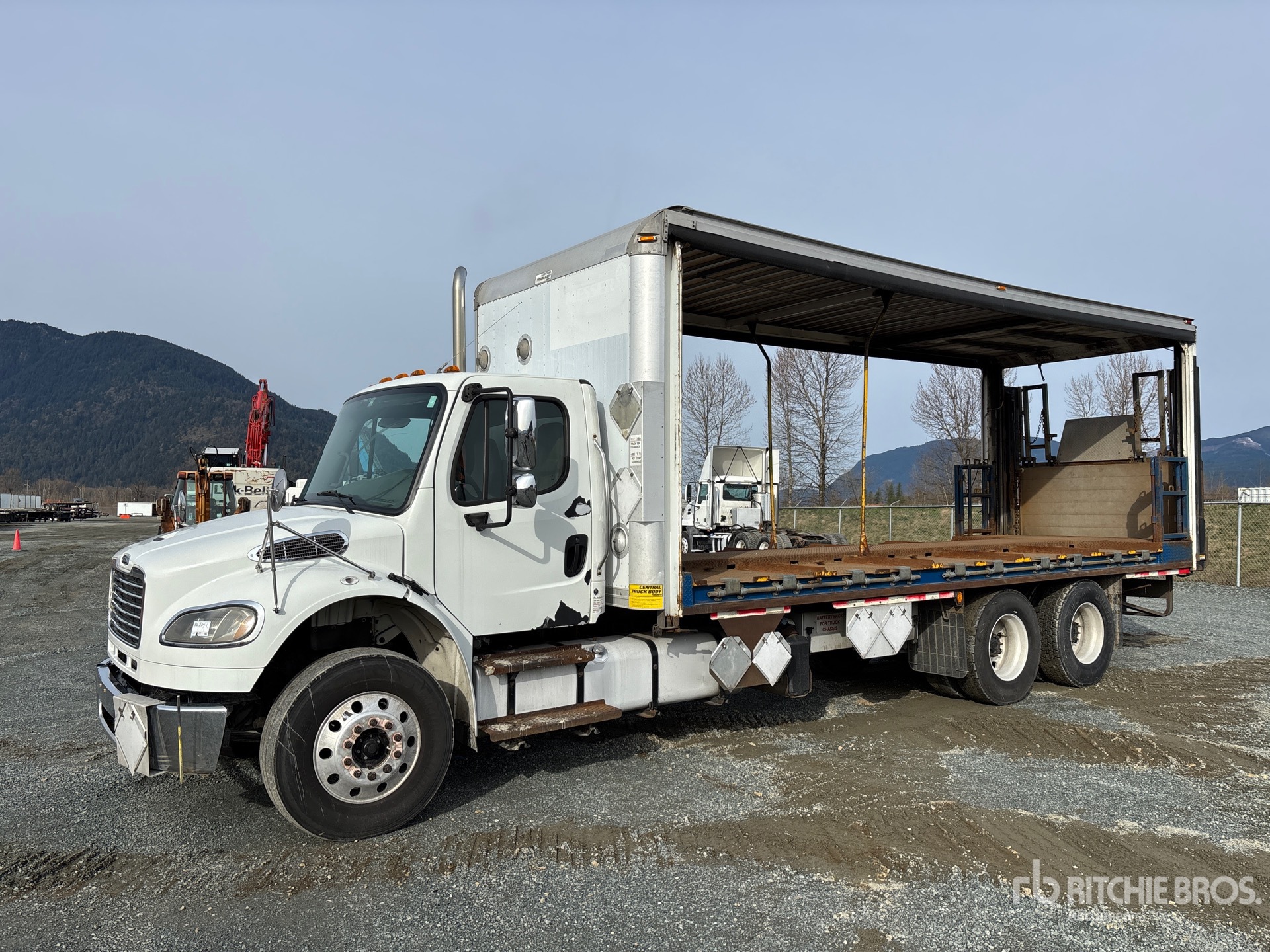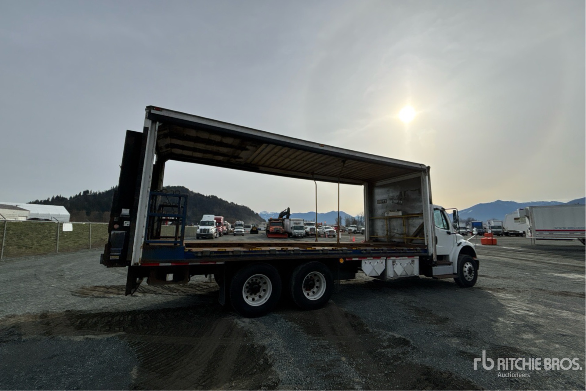 Cummins 6 Cylinder 8.3 L Diesel Engine, 11614 Engine hrs, Allison Automatic Transmission, 13220 lb Front Axle, 40000 lb Rears, 53220 lb GVWR, Aluminum Wheels, 11R22.5, Air Ride Suspension, 254 in Wheelbase, Central 26 ft x 102 in Wide x 100 in High Body, Liftgate