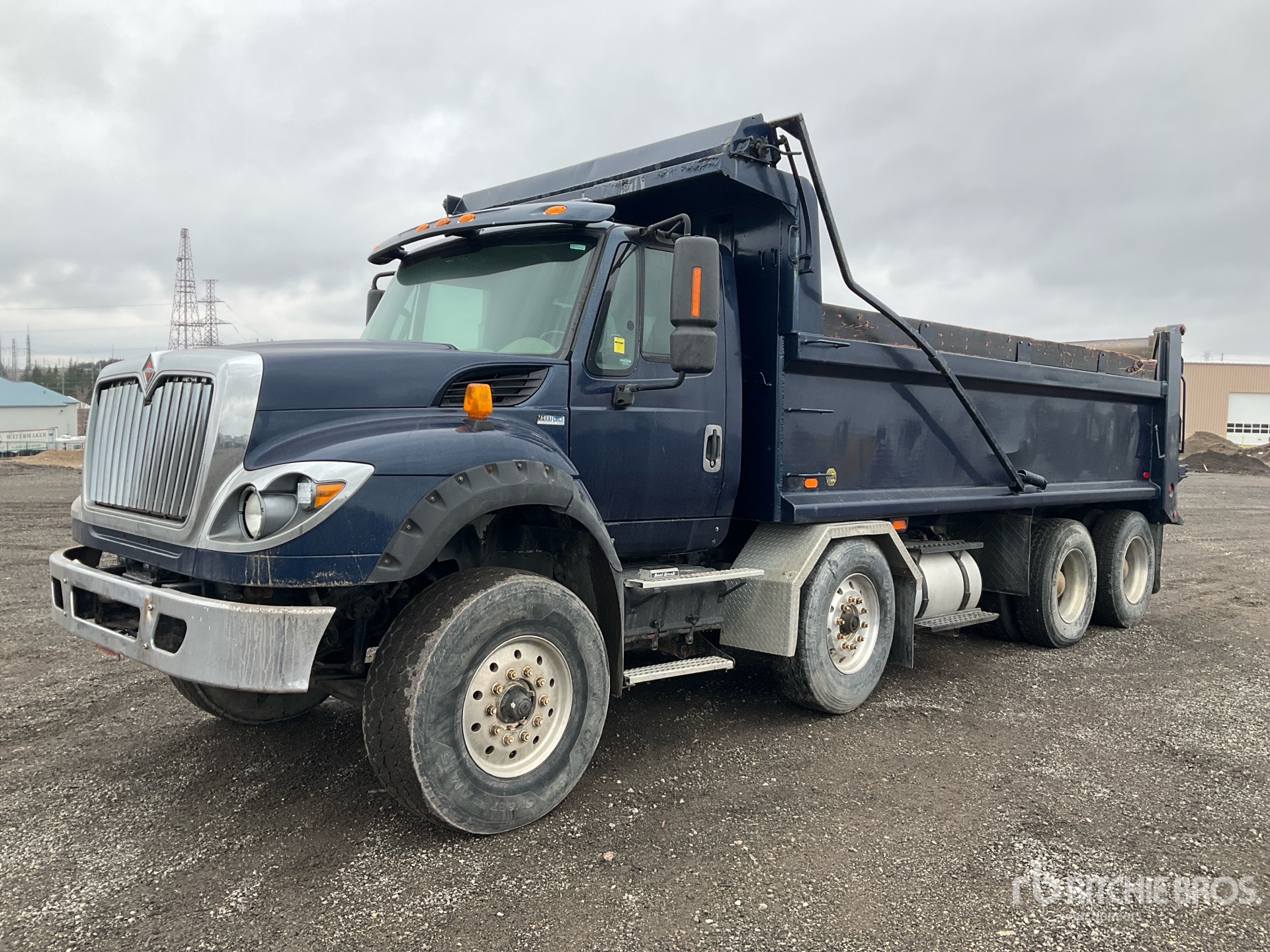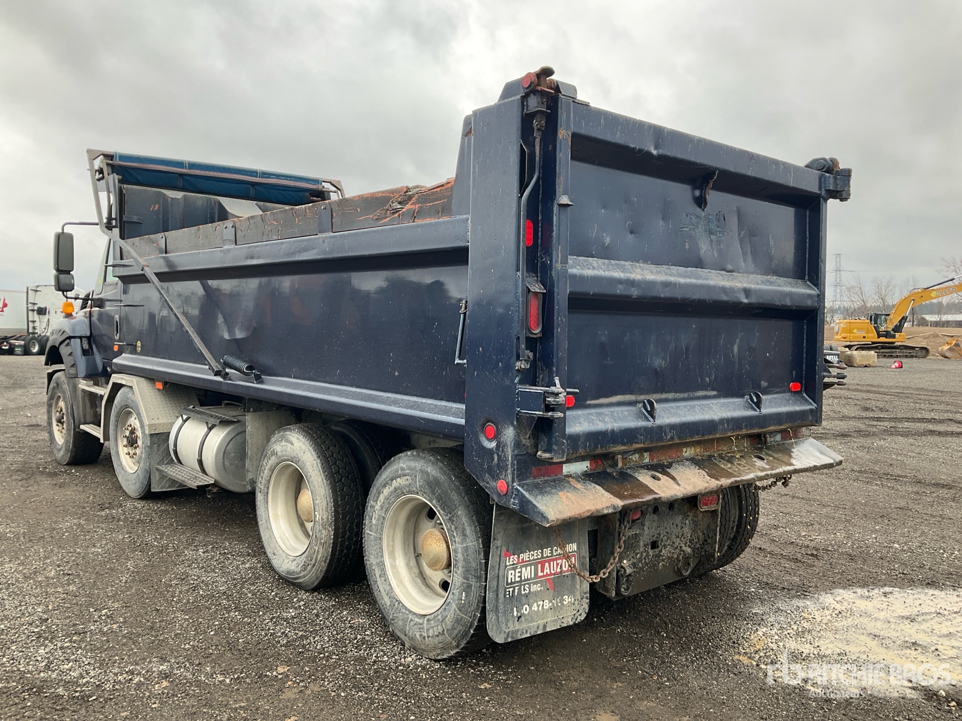 International Maxxforce 6 Cylinder Diesel Engine, 15231 Engine hrs, Retarder, Eaton Fuller 8LL Manual Transmission, Differential Lock, 9072 kg Front Axle, 9072 kg Rears, Air Ride Cab, Aluminum Wheels, 425/65R22.5 Front Tires, 11R22.5 Rear Tires, Dual Steering Boxes, Double Frame, Air Ride Suspension, 220 in Wheelbase, PTO, 19 ft Long x 3 ft 5 in High Steel Body, Air Powered Roll Tarp