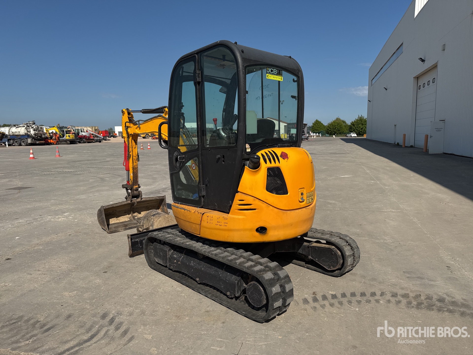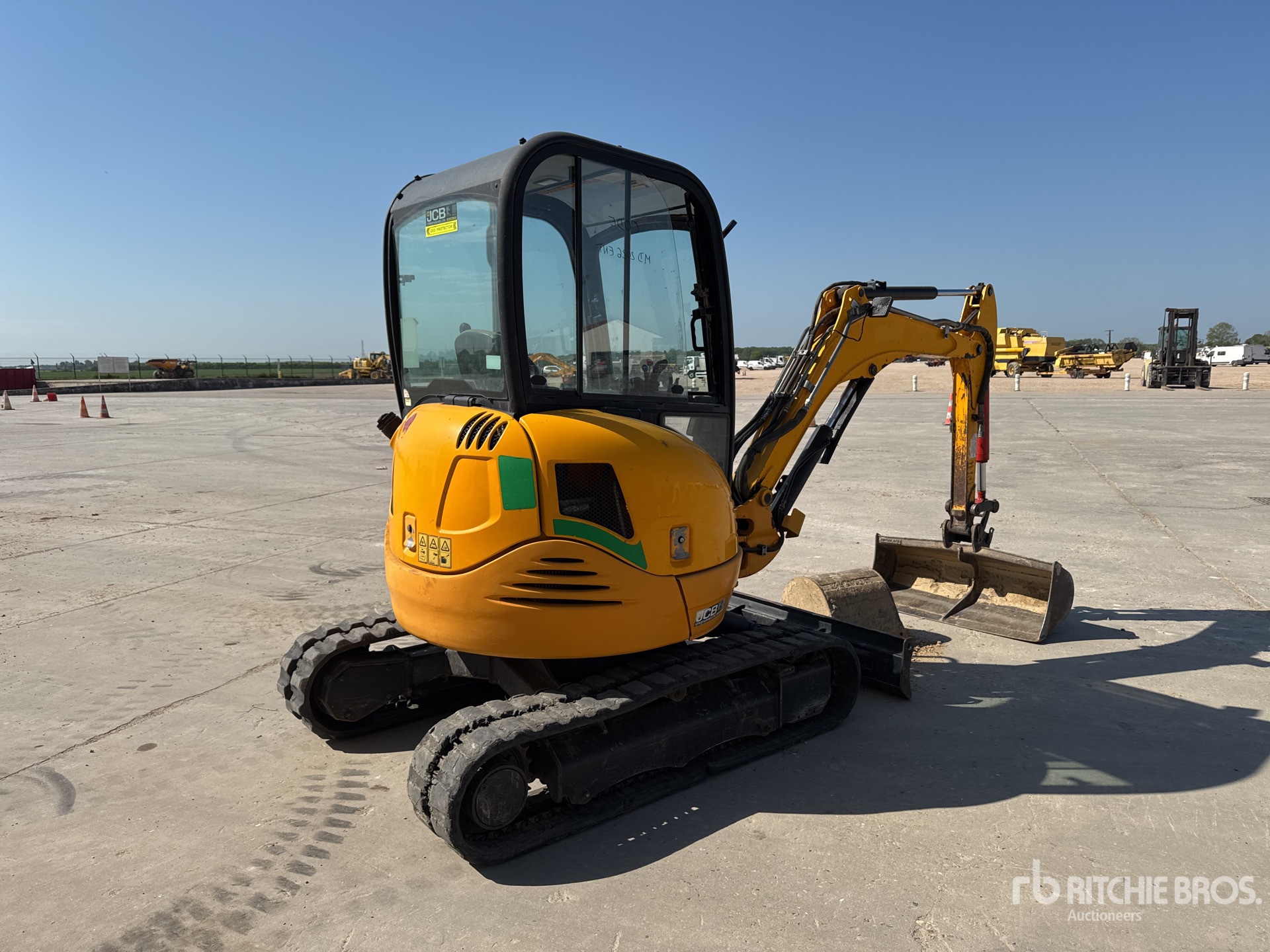 Enclosed Cab, US EPA Label, Swing Boom, 1100 mm Stick, Auxiliary Hydraulic Plumbing, Backfill Blade, Rubber Tracks, 1200 mm Cleanup Bucket, Additional 500 mm Digging Bucket