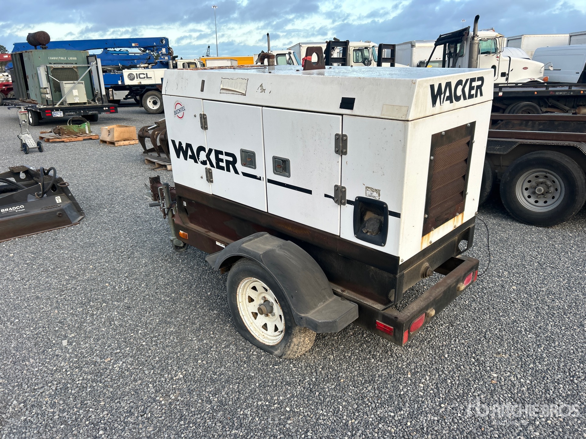 24.4 kVA/19.5 kW Rated 3 Phase Output, 248 V / 480 V Rated Voltage, 16 kVA,/16 kW, Rated Single Phase Output, 120 V / 240 V Rated Voltage, 240 V & 120 V Receptacles, Bottom Mounted Fuel Tank, Ball Hitch Carrier Trailer