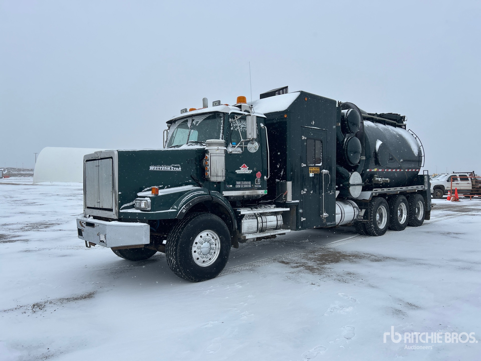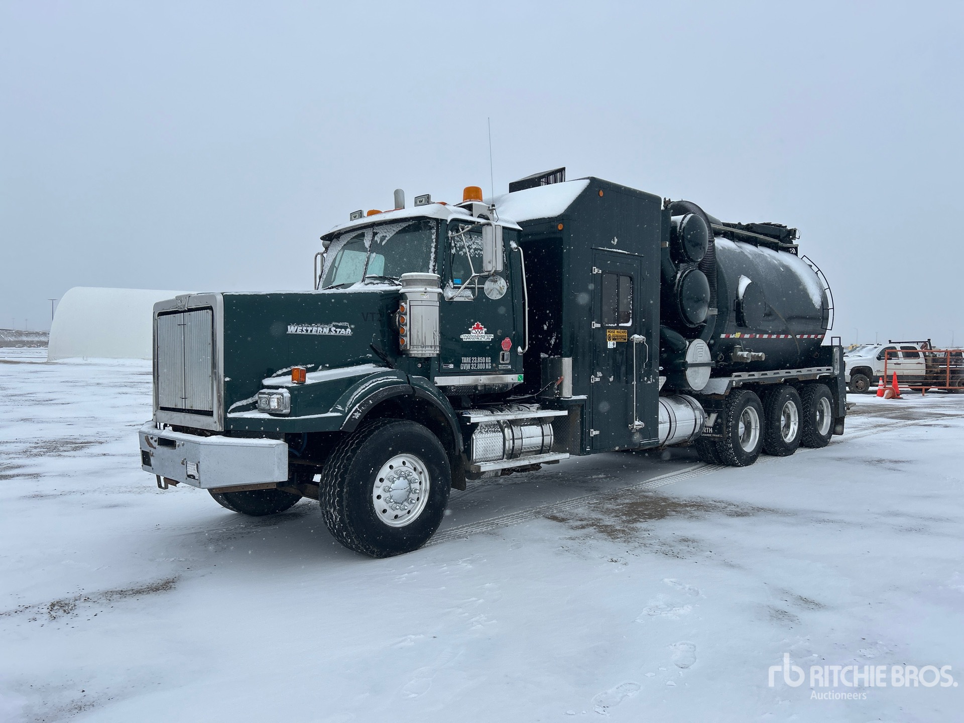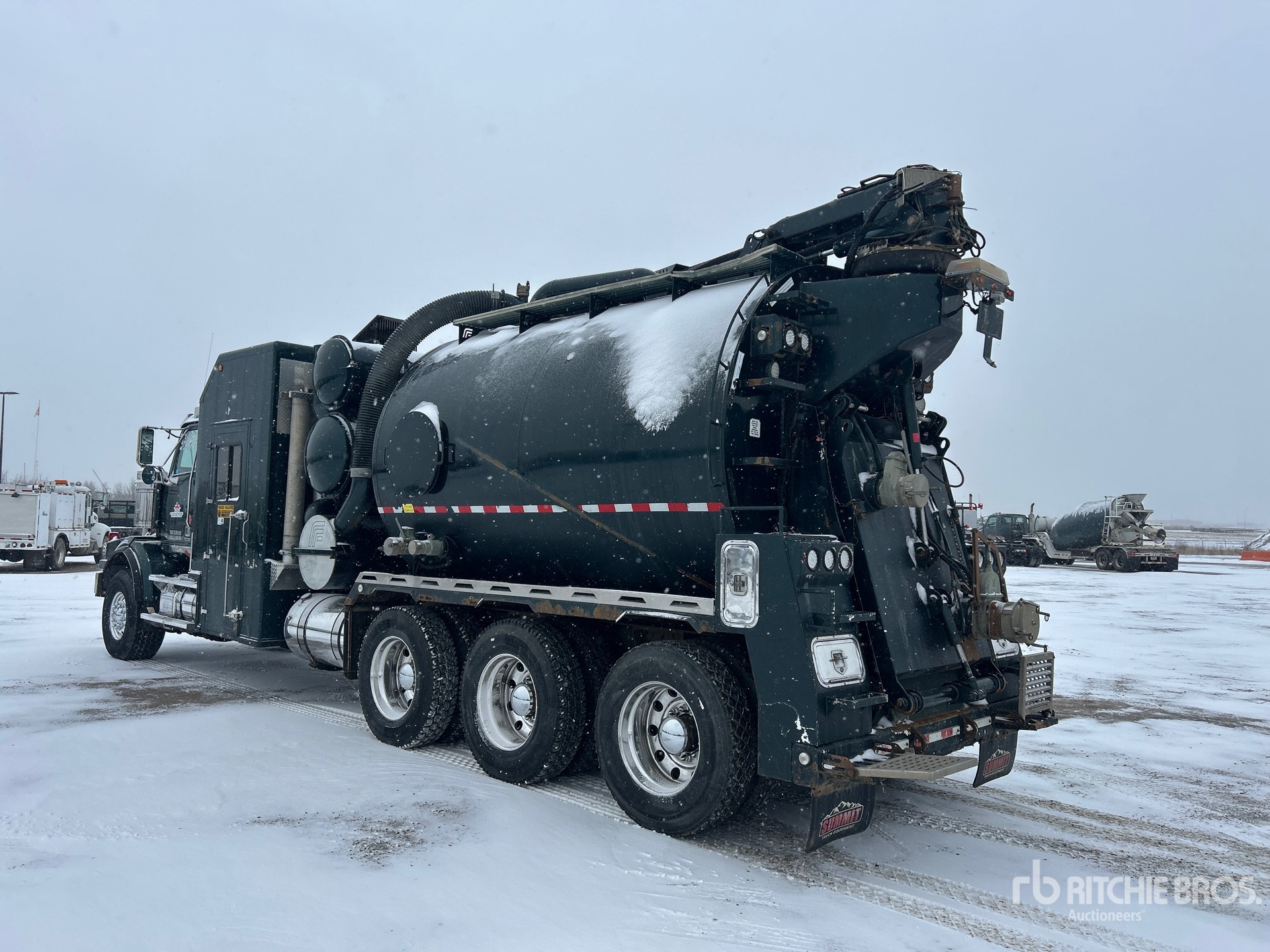 Located in Lane 45 Spot 28, Detroit DD15 6 Cylinder 14.8 L Diesel 560 hp Engine, Requires Diesel Exhaust Fluid, Positive Air Shutoff, 19758 Engine hrs, Engine Brake, Eaton Fuller RTLO-18918B 18-Speed Manual Transmission, Triple Differential Locks, 20000 lb Front Axle, 57000 lb Rears, Meritor RZ166 Drive Axles, 4.30:1 Axle Ratio, 77000 lb GVWR, Air Ride Cab, Aluminum Wheels, 445/65R22.5 Front Tires, 11R24.5 Rear Tires, Dual Steering Boxes, Double Frame, Airliner Air Ride Suspension, 300 in Wheelbase, PTO, Steel 2625 gal Debris Tank, Front Hose Reel, 2000 gal Fresh Water Tank, Drop Down Tailate, Wash Down System, Hydraulic Tailgate Locks, 17 ft Telescopic Boom, 8 in Suction Hose, CAT Hydraulic Driven Pump, Robuschi 125 Blower w/ 2384 hrs, Hotsy WB9450 Boiler w/ 1338 hrs, Cordless Remote Control