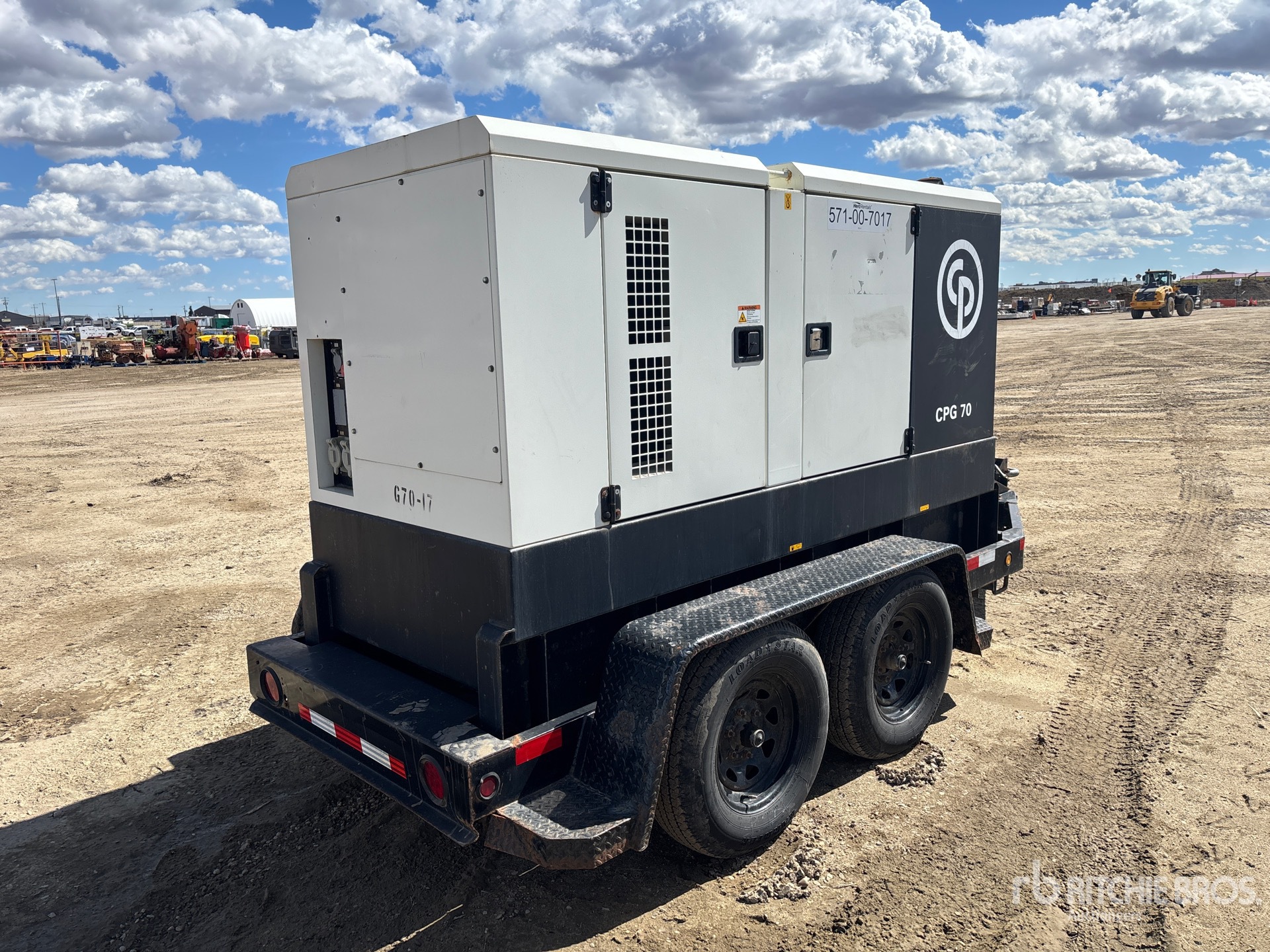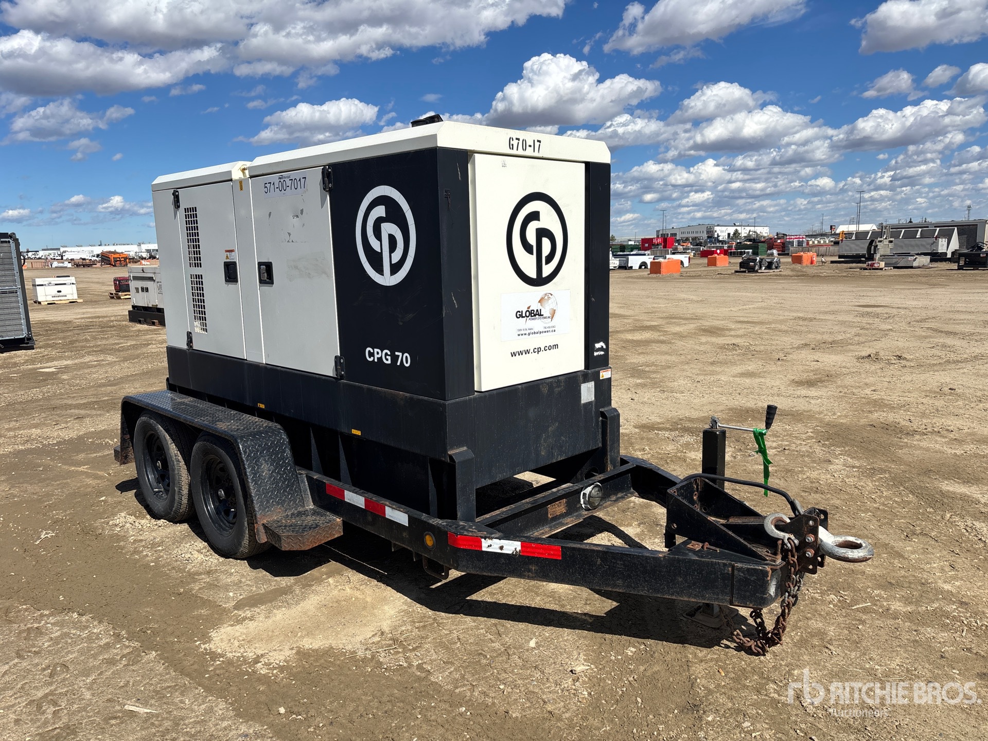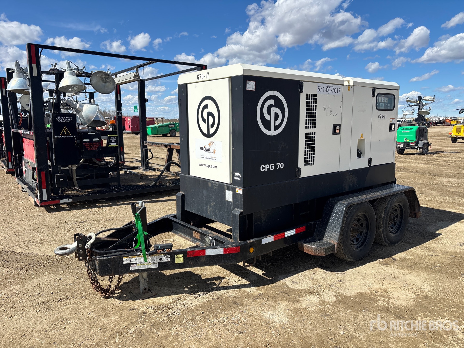 2014 US EPA Label, CARB Compliant, John Deere 4045TF285E 4 Cylinder 74 kW 4.5 L Diesel Engine, 70 kVA,/56 kW, Rated Single Phase Output, 120 V / 240 V Rated Voltage, Sound Attenuated, Bottom Mounted Fuel Tank, Lunette Ring Carrier Trailer, Electric Brakes