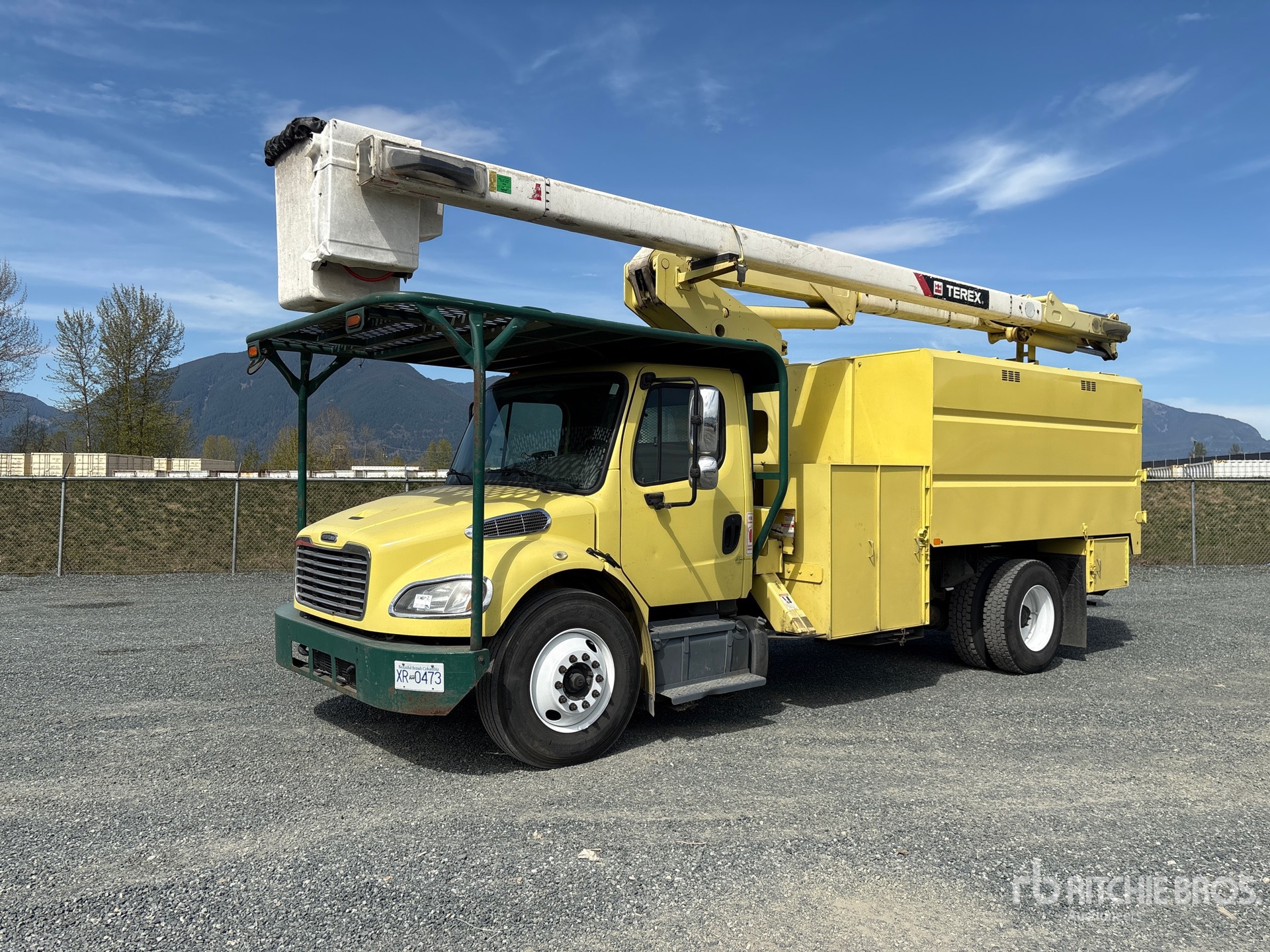 Cummins ISB 6 Cylinder 6.7 L Diesel 250 hp Engine, 2013 US EPA Label, CARB Compliant, 11910 Engine hrs, Allison 3500 Automatic Transmission, 12000 lb Front Axle, 21000 lb Rears, 33000 lb GVWR, 11R22.5, Spring Suspension, 200 in Wheelbase, PTO, Terex XT60, 60 ft Platform Height, Insulated Boom, 1 Person Bucket, 12 ft Box, Double Swing Endgate