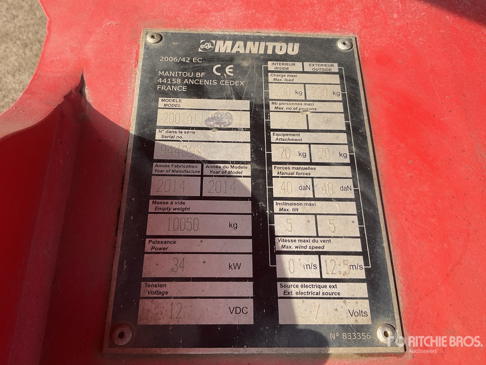 The detailed equipment information is limited in scope, and Ritchie Bros. Auctioneers has not inspected any aspects or components of the equipment other than those expressly set forth herein. Unless expressly stated, we make no representations or warranties, express or implied, concerning the equipment or its components, including without limitation any representations or warranties concerning functionality, conformity or compliance with any safety standard or requirement of any applicable authority or regulatory body, fitness for any particular purpose, or merchantability. You are strongly advised to perform your own detailed inspection of the equipment prior to bidding.