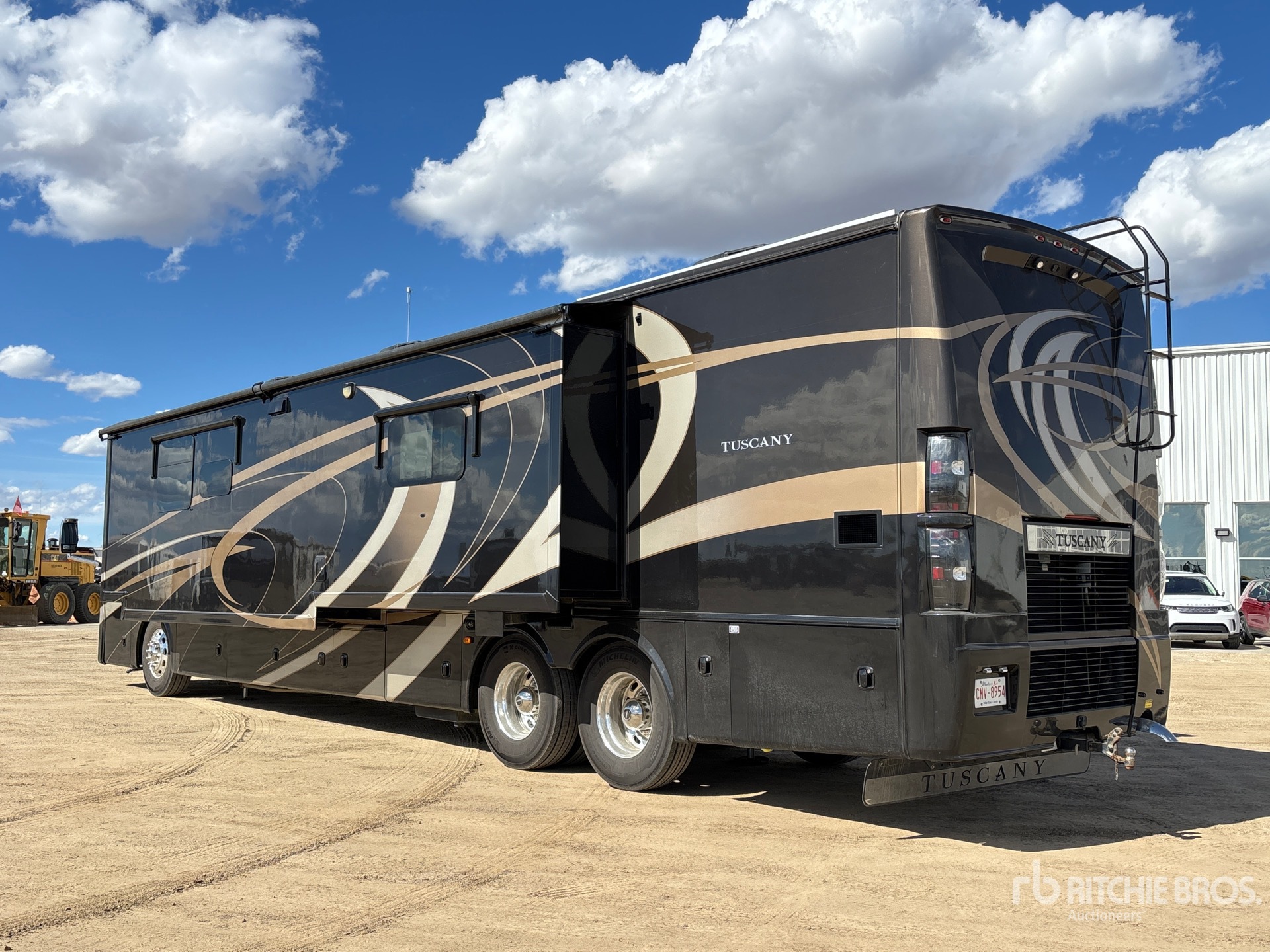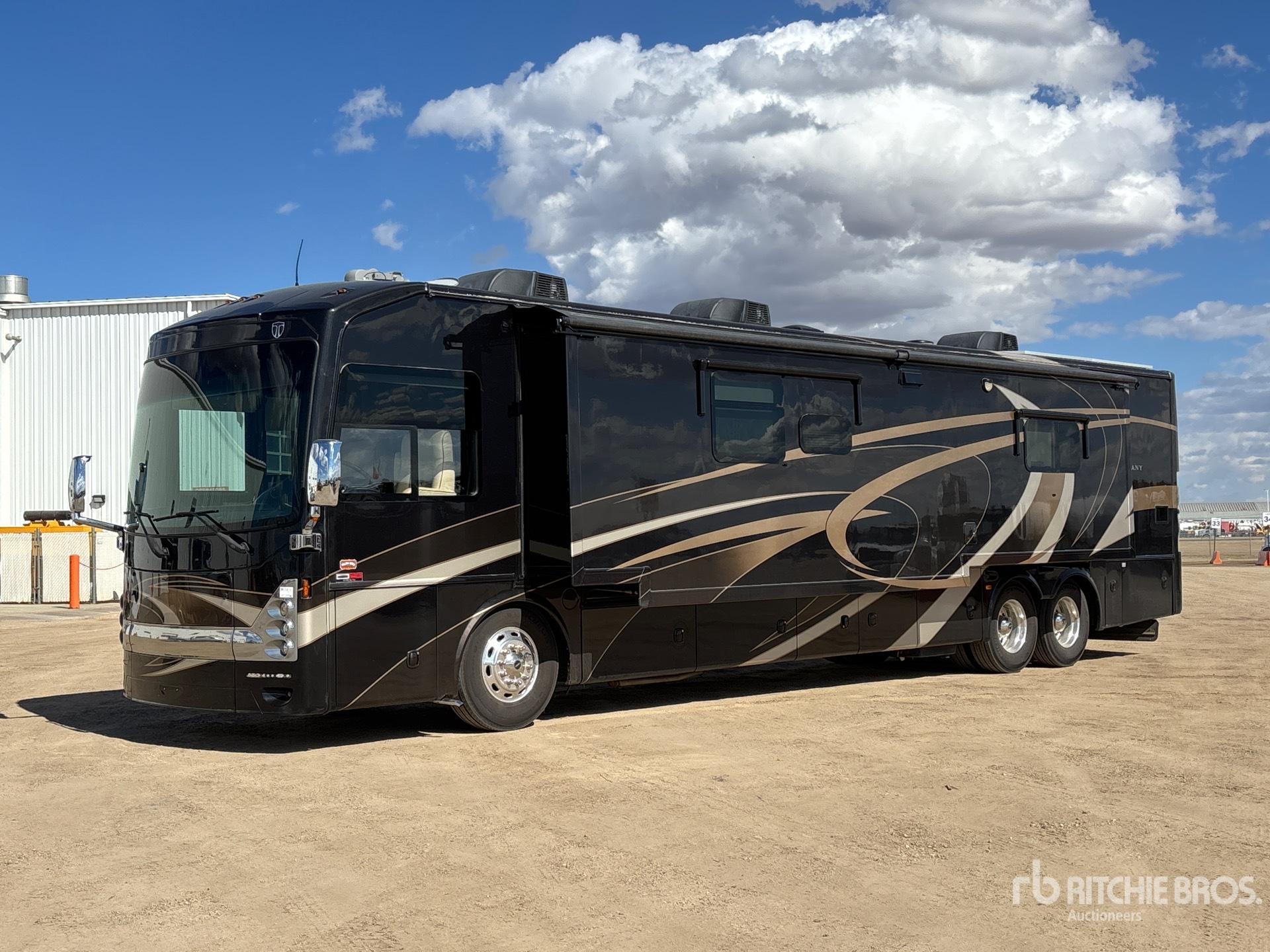 Air Conditioner, Allison 6 Speed Automatic Transmission, Cummins ISL9 6 Cylinder 8.9 L Diesel 450 hp Engine, Sleeps 6 People, Dish Washer, Clothes Washer & Dryer, 44600 lb GVWR, 3 Slide Outs, Power Entrance Step, Power Leveling Jacks, Power Awning, Roof Mounted Satellite Receiver, Onan 8000 Generator w/ 907 hrs, 2 full bathrooms with porcelain toilets, heated floors, boiler system, endless hot water, fire place, residential fridge