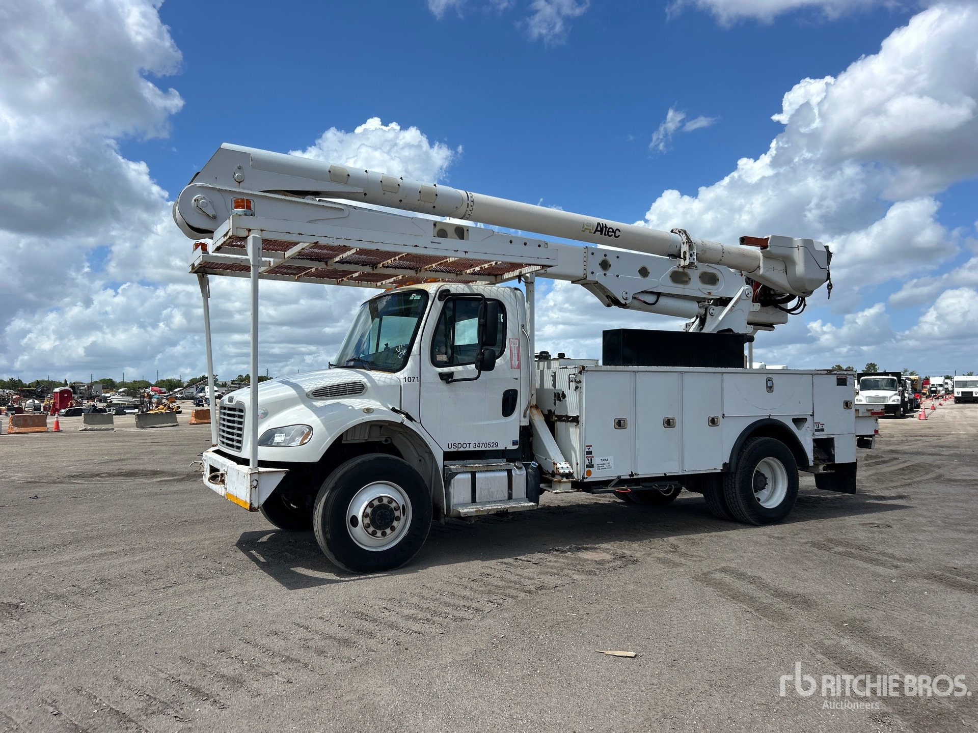Cummins ISB 6 Cylinder 6.7 L Diesel 250 hp Engine, 2016 US EPA Label, Requires Diesel Exhaust Fluid, 9971 Engine hrs, Exhaust Brake, Allison 3500 Automatic Transmission, 13220 lb Front Axle, 21000 lb Rears, 33000 lb GVWR, Air Ride Cab, 11R22.5, Double Frame, Spring Suspension, 190 in Wheelbase, PTO, 700 lb Capacity, Rear Mounted, Insulated Two-Person Articulated Boom, Utility Body, Turret Mounted Winch, Material Handling Jib, A-Outriggers, Rear Outriggers, 16 ft x 96 in Bed, Pintle Hitch