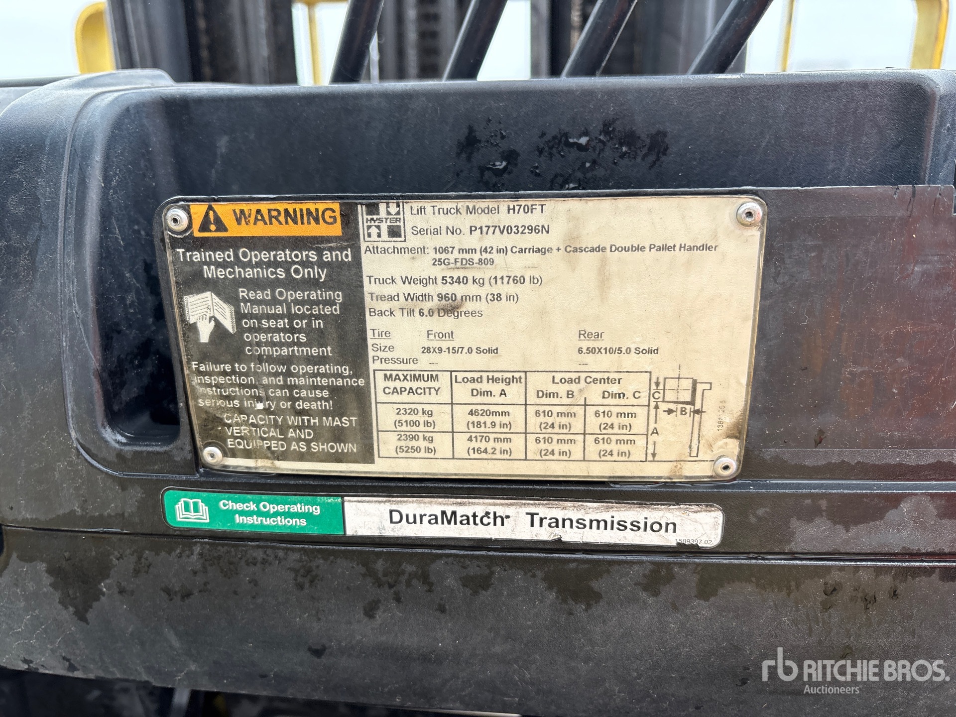 The detailed equipment information is limited in scope, and Ritchie Bros. Auctioneers has not inspected any aspects or components of the equipment other than those expressly set forth herein. Unless expressly stated, we make no representations or warranties, express or implied, concerning the equipment or its components, including without limitation any representations or warranties concerning functionality, conformity or compliance with any safety standard or requirement of any applicable authority or regulatory body, fitness for any particular purpose, or merchantability. You are strongly advised to perform your own detailed inspection of the equipment prior to bidding.