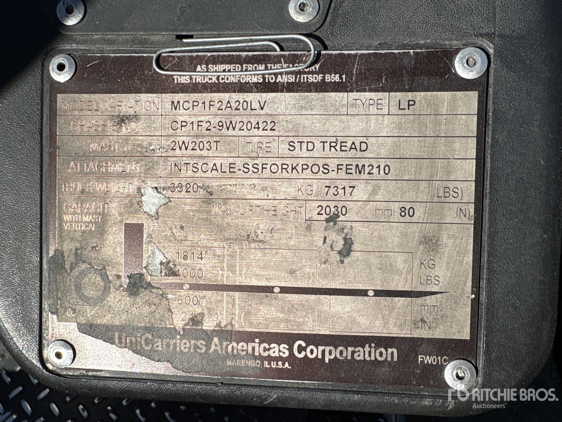 The detailed equipment information is limited in scope, and Ritchie Bros. Auctioneers has not inspected any aspects or components of the equipment other than those expressly set forth herein. Unless expressly stated, we make no representations or warranties, express or implied, concerning the equipment or its components, including without limitation any representations or warranties concerning functionality, conformity or compliance with any safety standard or requirement of any applicable authority or regulatory body, fitness for any particular purpose, or merchantability. You are strongly advised to perform your own detailed inspection of the equipment prior to bidding.
