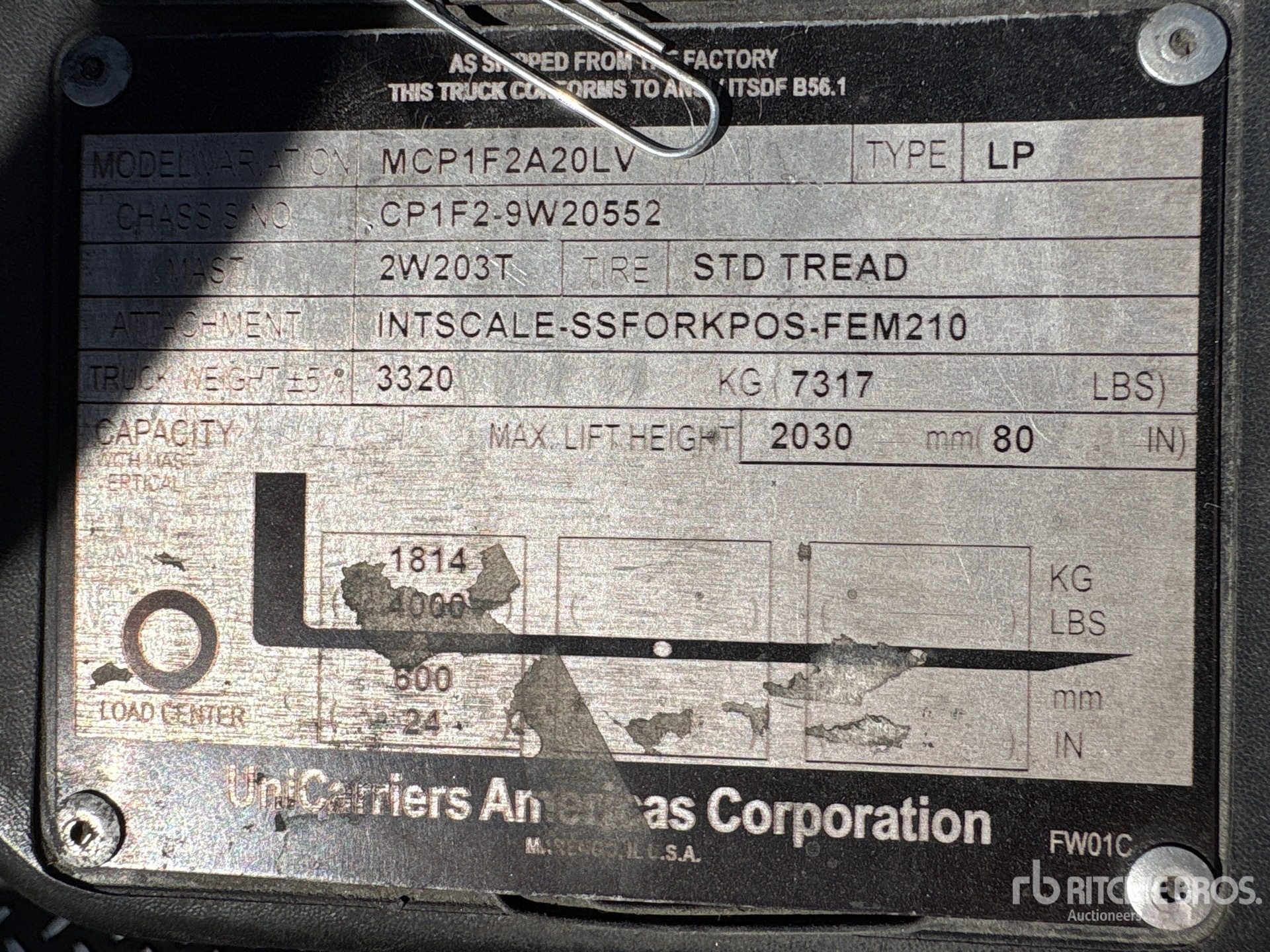 The detailed equipment information is limited in scope, and Ritchie Bros. Auctioneers has not inspected any aspects or components of the equipment other than those expressly set forth herein. Unless expressly stated, we make no representations or warranties, express or implied, concerning the equipment or its components, including without limitation any representations or warranties concerning functionality, conformity or compliance with any safety standard or requirement of any applicable authority or regulatory body, fitness for any particular purpose, or merchantability. You are strongly advised to perform your own detailed inspection of the equipment prior to bidding.