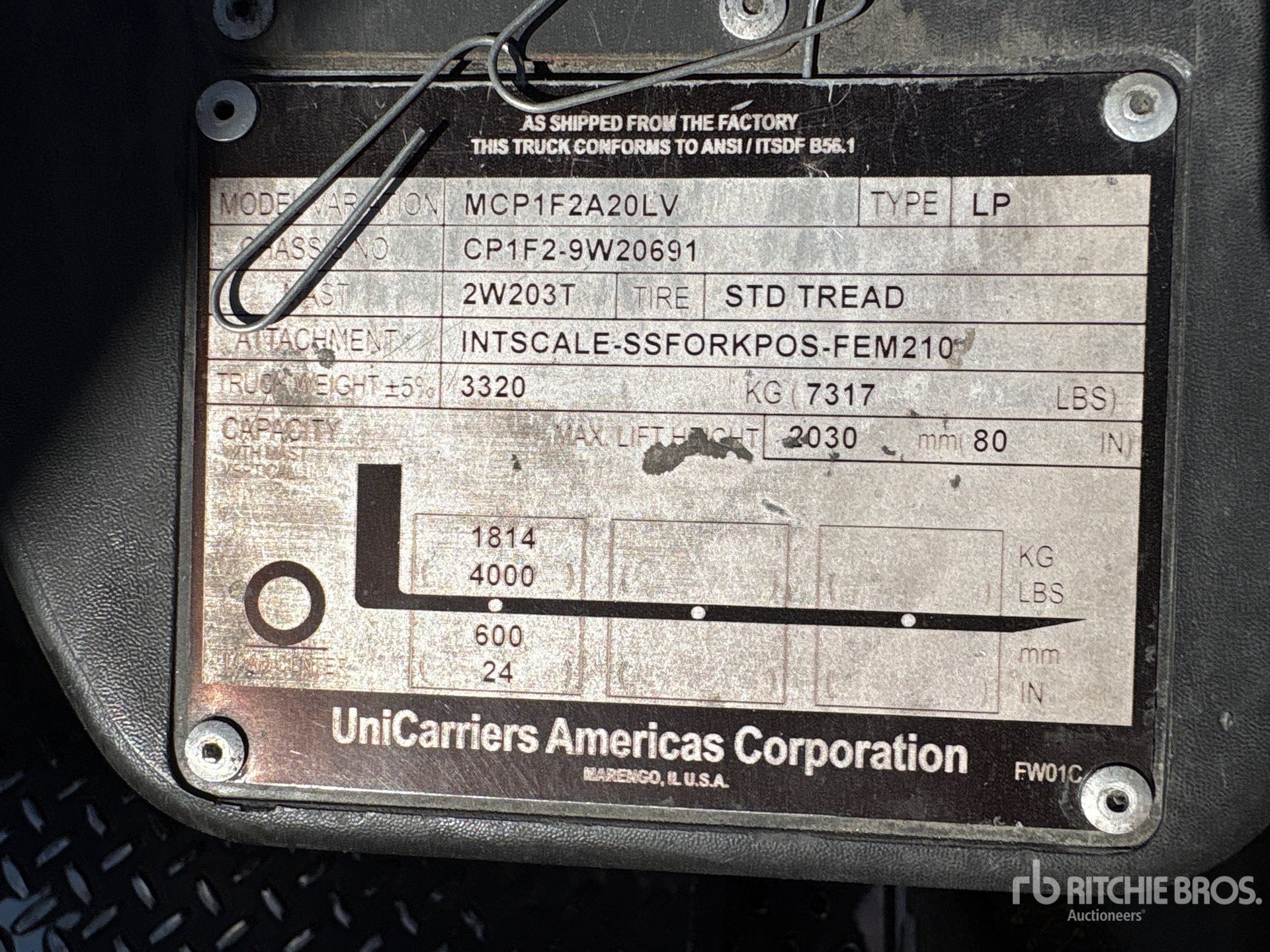 The detailed equipment information is limited in scope, and Ritchie Bros. Auctioneers has not inspected any aspects or components of the equipment other than those expressly set forth herein. Unless expressly stated, we make no representations or warranties, express or implied, concerning the equipment or its components, including without limitation any representations or warranties concerning functionality, conformity or compliance with any safety standard or requirement of any applicable authority or regulatory body, fitness for any particular purpose, or merchantability. You are strongly advised to perform your own detailed inspection of the equipment prior to bidding.